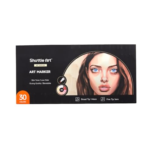 - DUAL TIP & COLOR CODE CAPS: Shuttle Art flesh-tone & hair markers have both a 7mm broad tip and a 1mm pointed bullet tip. Our markers writes well and blends easily, specially designed for flesh, face, hair,portrait, illustration, manga, anime and the color-coded caps allow for ease in organization and to identify colors quickly.