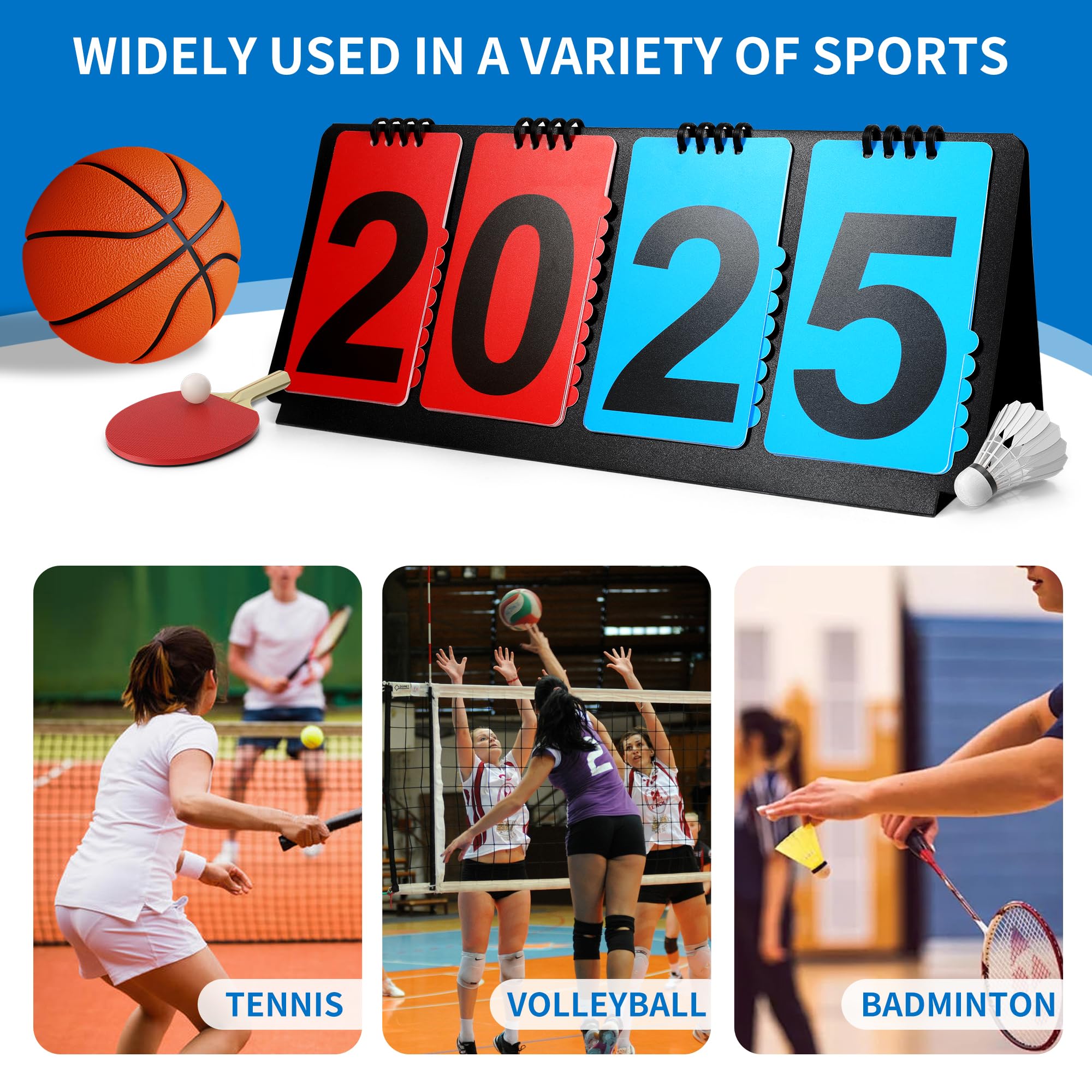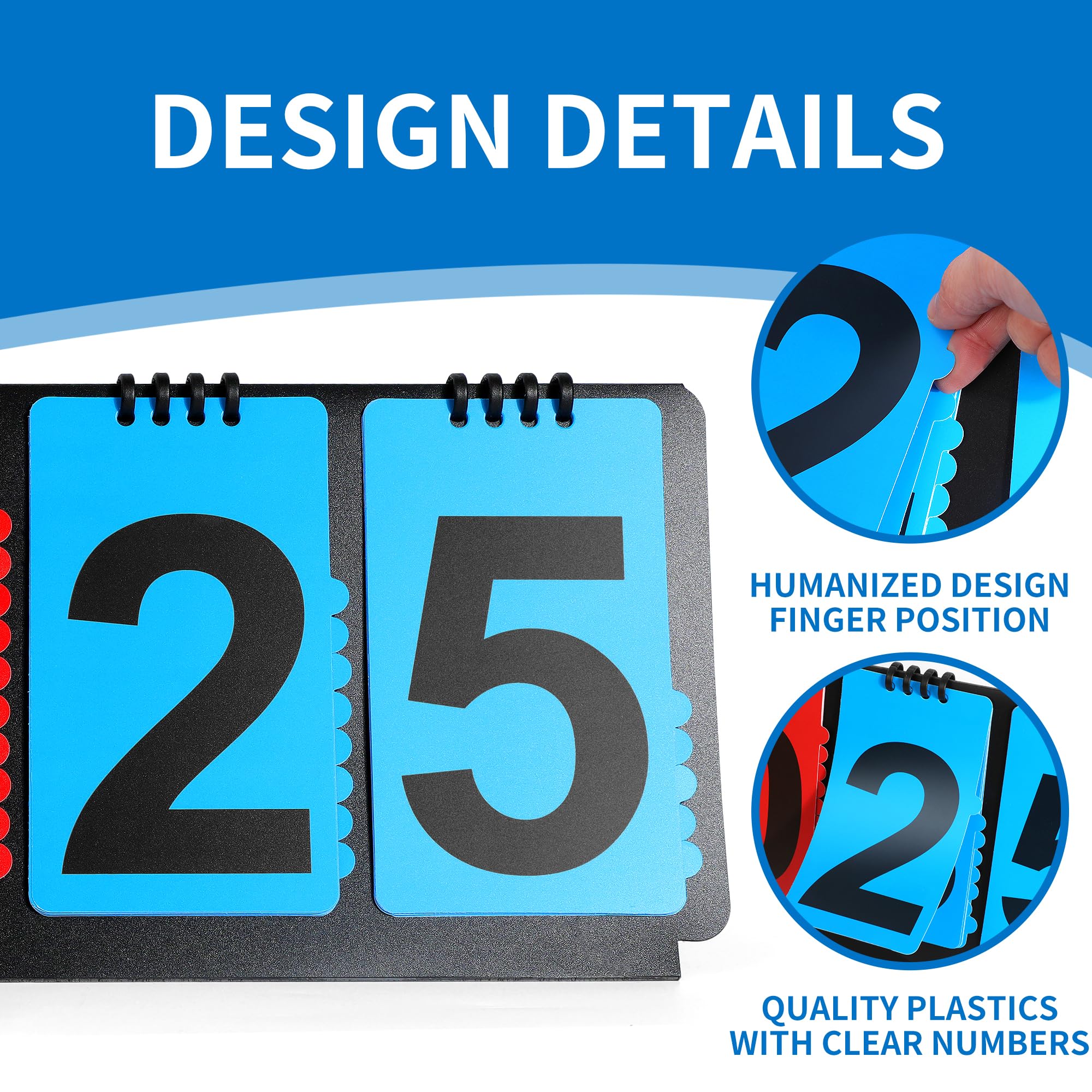 Flip Scoreboard with Finger Slot Design: Our manual scoreboard features ergonomic finger slots for quick, hassle-free score updates during basketball, baseball and volleyball games.