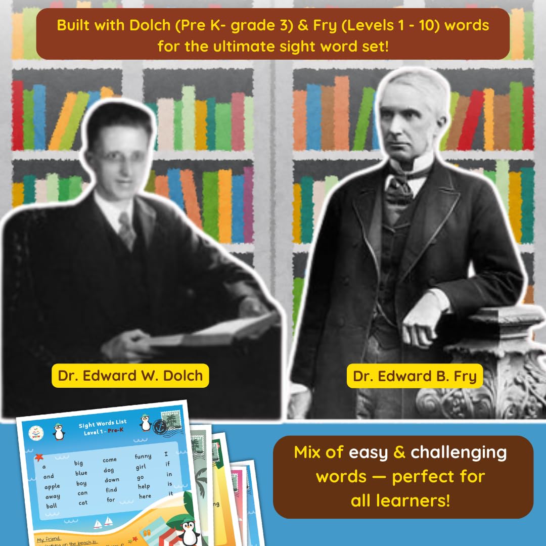 - Essential Words: Contains 300 of the most common sight words that young readers need to recognize automatically for reading fluency and comprehension
