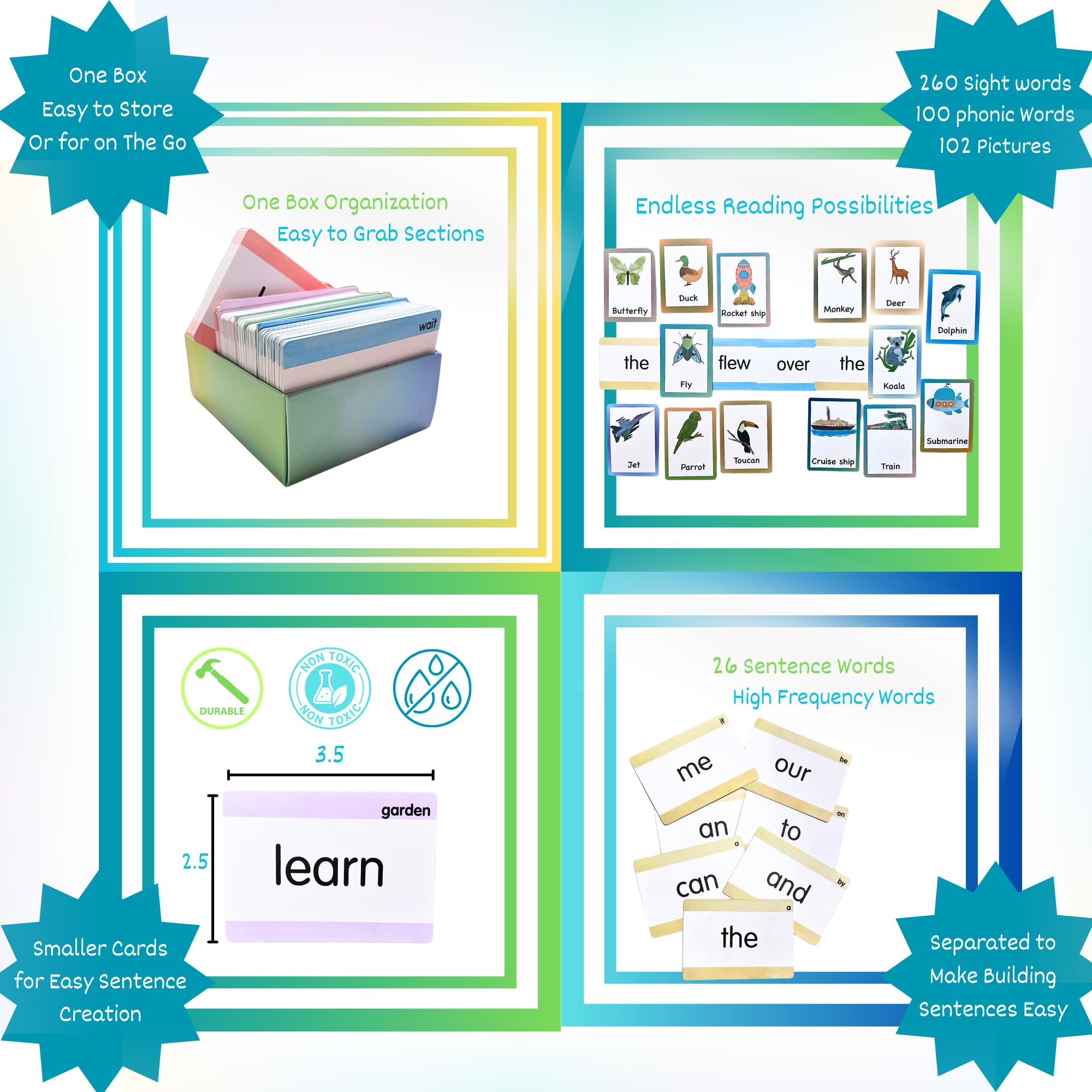 - Building sentences: Designed with 500 words levels K-2, phonics and book like pictures to keep your child engaged with a hands on flashcard experience made easy for parents and children. Perfect for homeschool learning and a classroom setting. Our Instagram QR is inculded for more sentence ideas