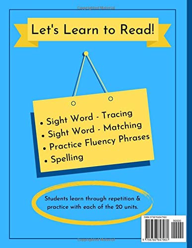 Help Your Child with Early Reading Skills Children Learn Early-on Sight Words & High Frequency Words Practice Handwriting by Tracing Activities Use of Repetition with Specific Sentences Helps Children with Fluency Word Cards – Children can Create Their Own Sentences Ages 5-7 8 1/2″ x 11″ 90 Pages This workbook provides a specific structure that uses repetition to build a child’s confidence and ability level. Each unit consists of four pages that repeat throughout the units with the words and skill level changing. Every fourth page provides the child the opportunity to color and match different pictures and words. Early first graders and late kindergarteners will benefit from the repetitive sentences found in each unit to help them build their fluency abilities. Word card pages are available at the end of the workbook. Children can cut them out and use the words to create their own sentences/stories.