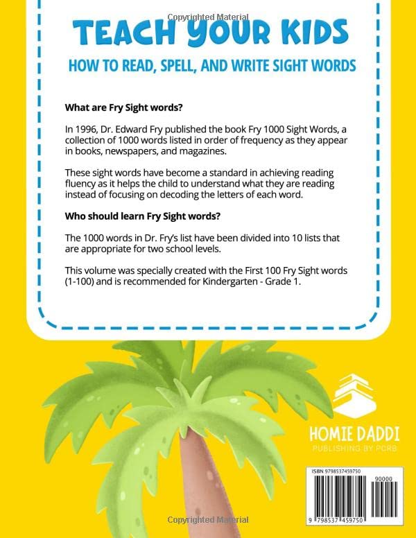 This workbook helps students in kindergarten and 1st grade develop early reading skills by mastering the first 100 Fry sight words.