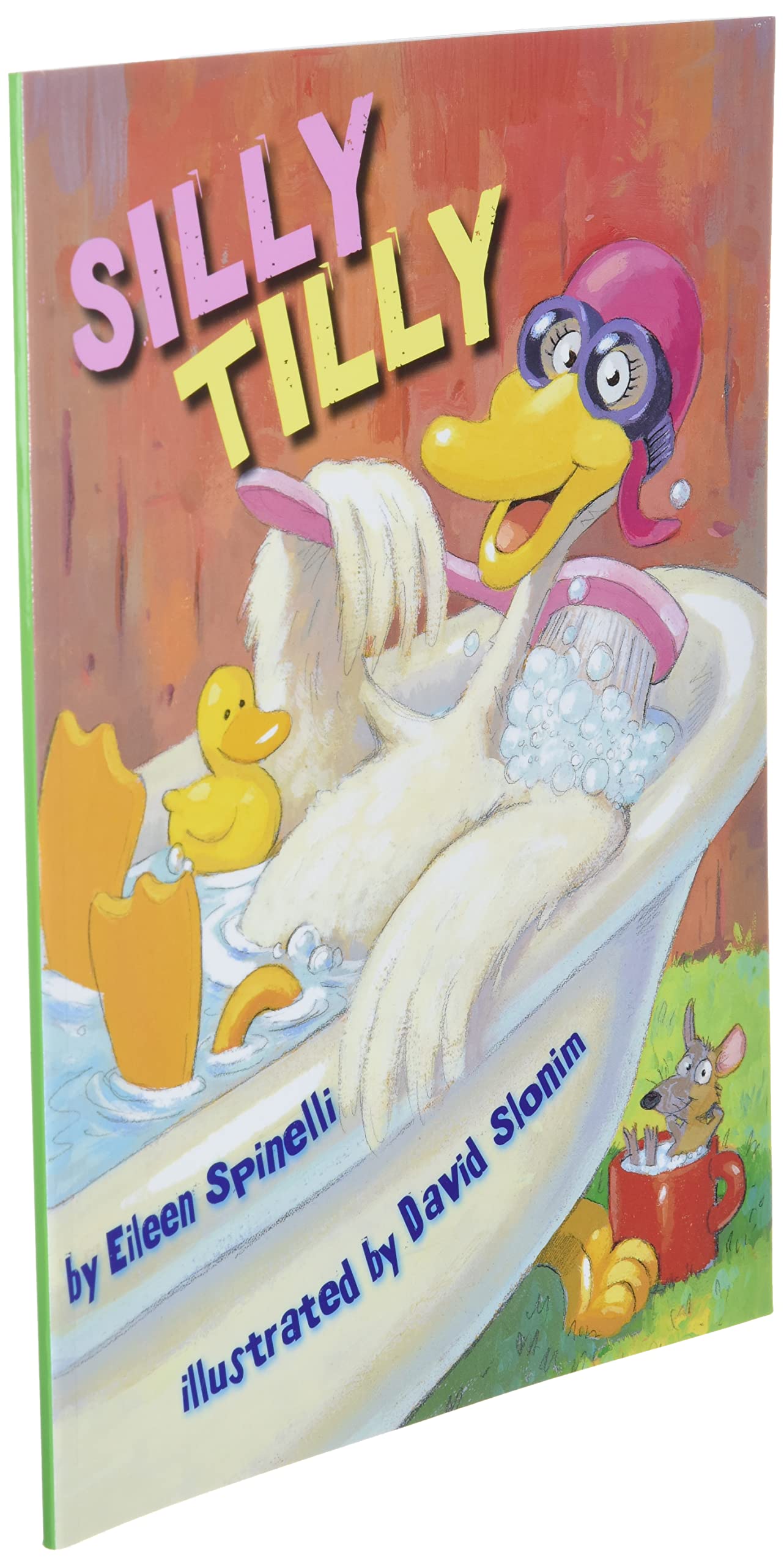 “Tilly is not an ordinary goose. She takes her baths in apple juice. She wears a pancake as a hat. She tries to ride the farmer’s cat.” But the barnyard animals complain that she’s too silly. When she stops entertaining her friends with her antics, the farm becomes a quiet and unhappy place. David Slonim’s acrylic, pencil, and ballpoint pen illustrations add to the hilarity in this story about a one-of-a-kind silly goose.