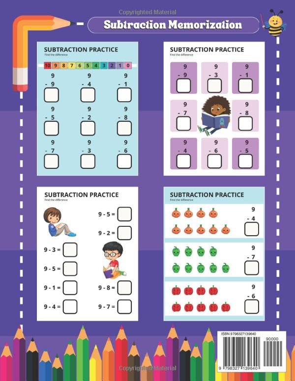 This workbook provides practice pages and visual graphics to help students master basic subtraction skills.