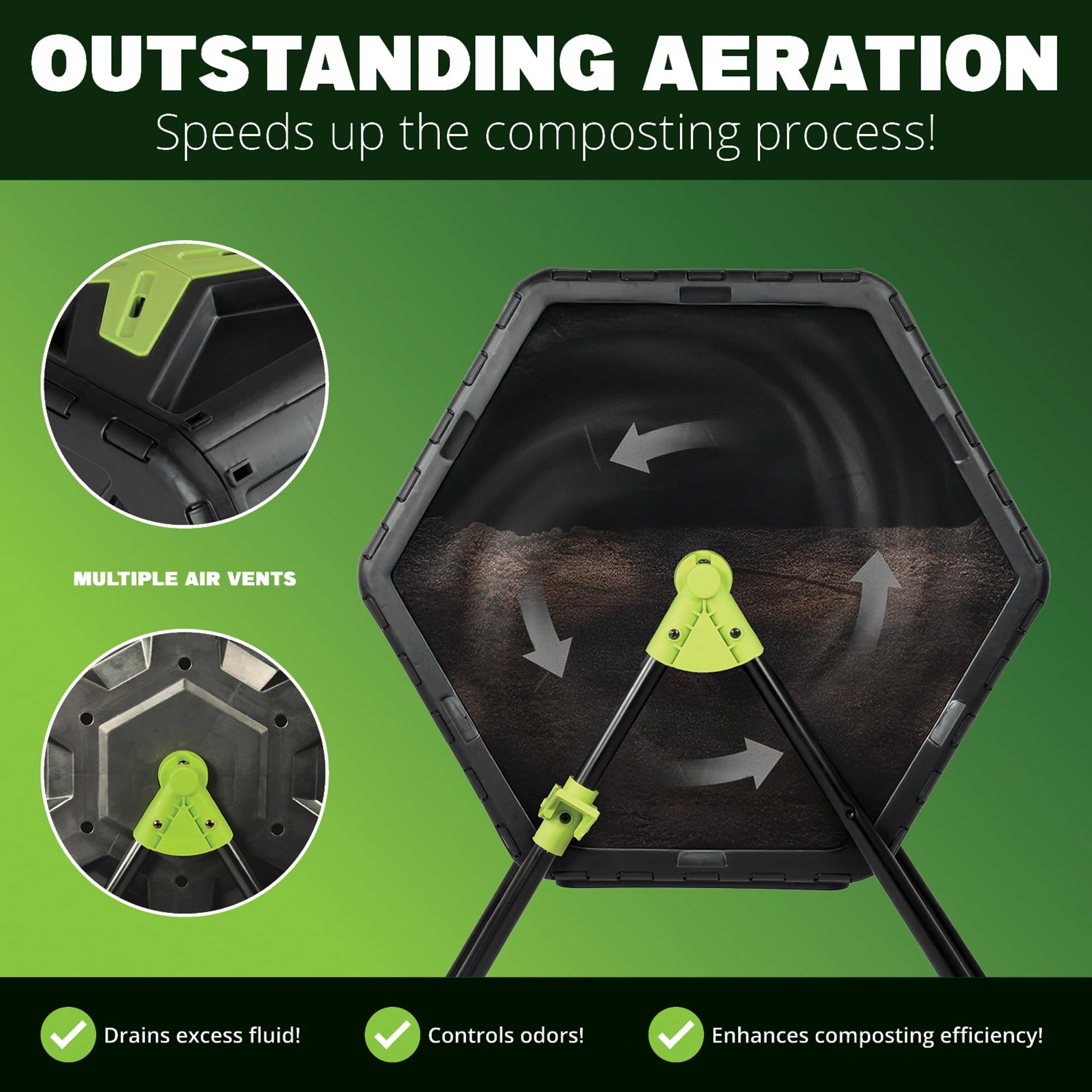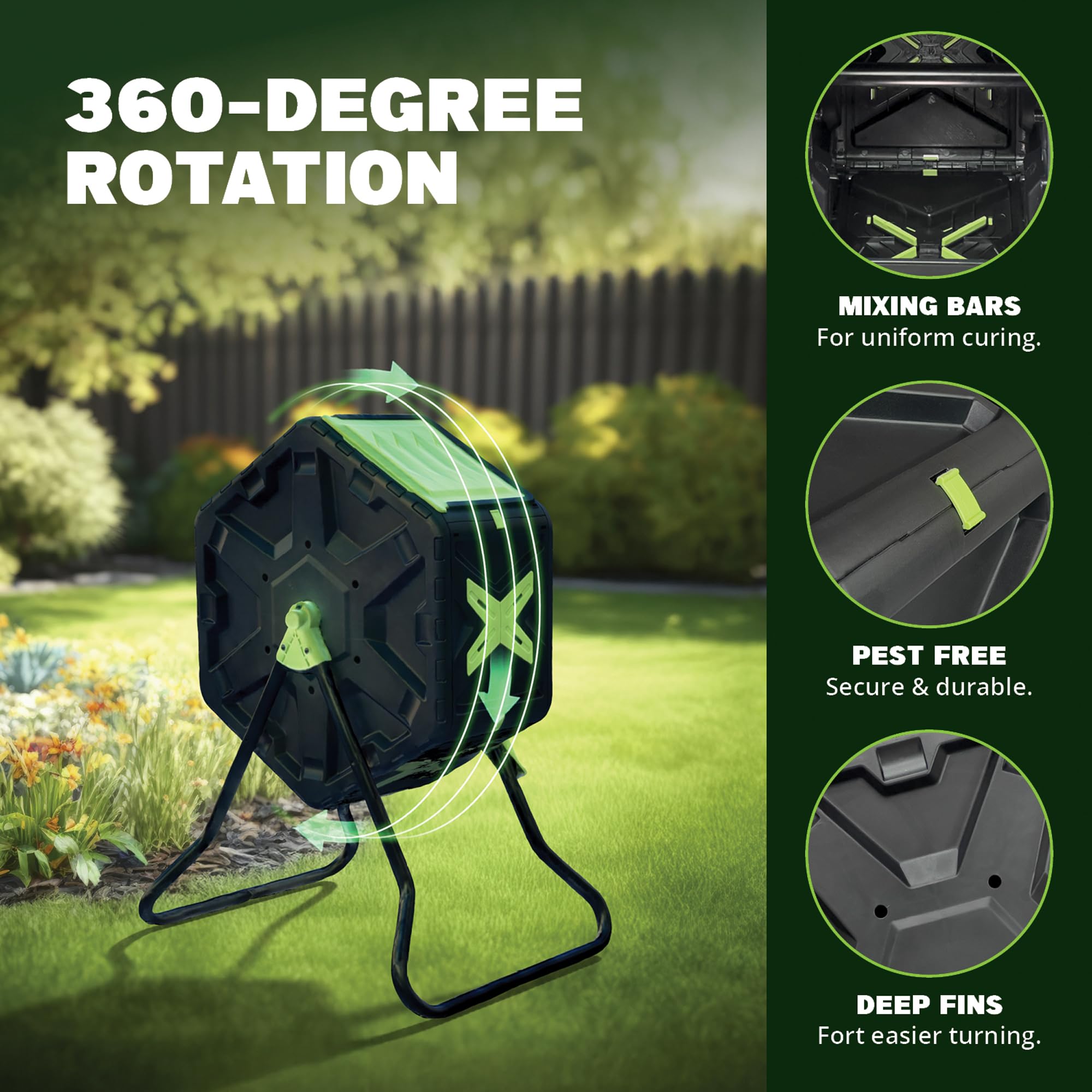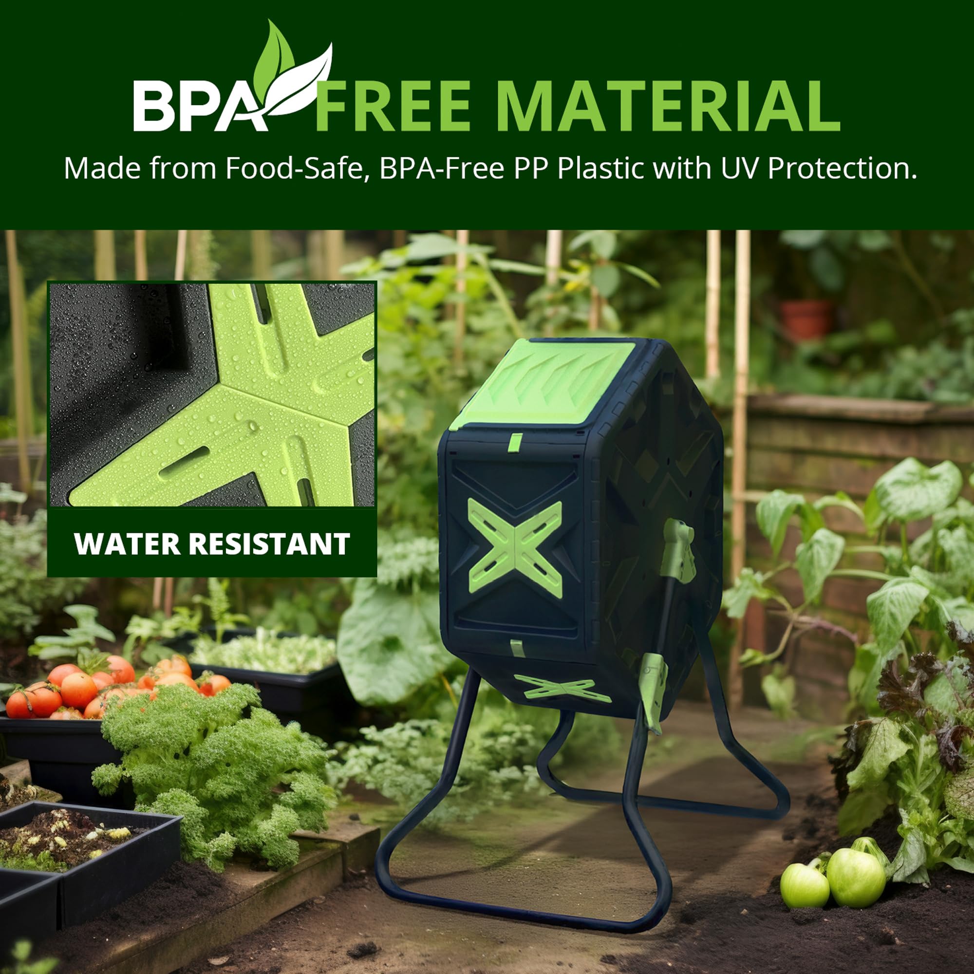 Eco-Friendly and Durable: Made from BPA-free PP plastic, this compost tumbler bin is UV-resistant and weather-resistant, providing long-lasting, eco-friendly performance for outdoor composting needs.