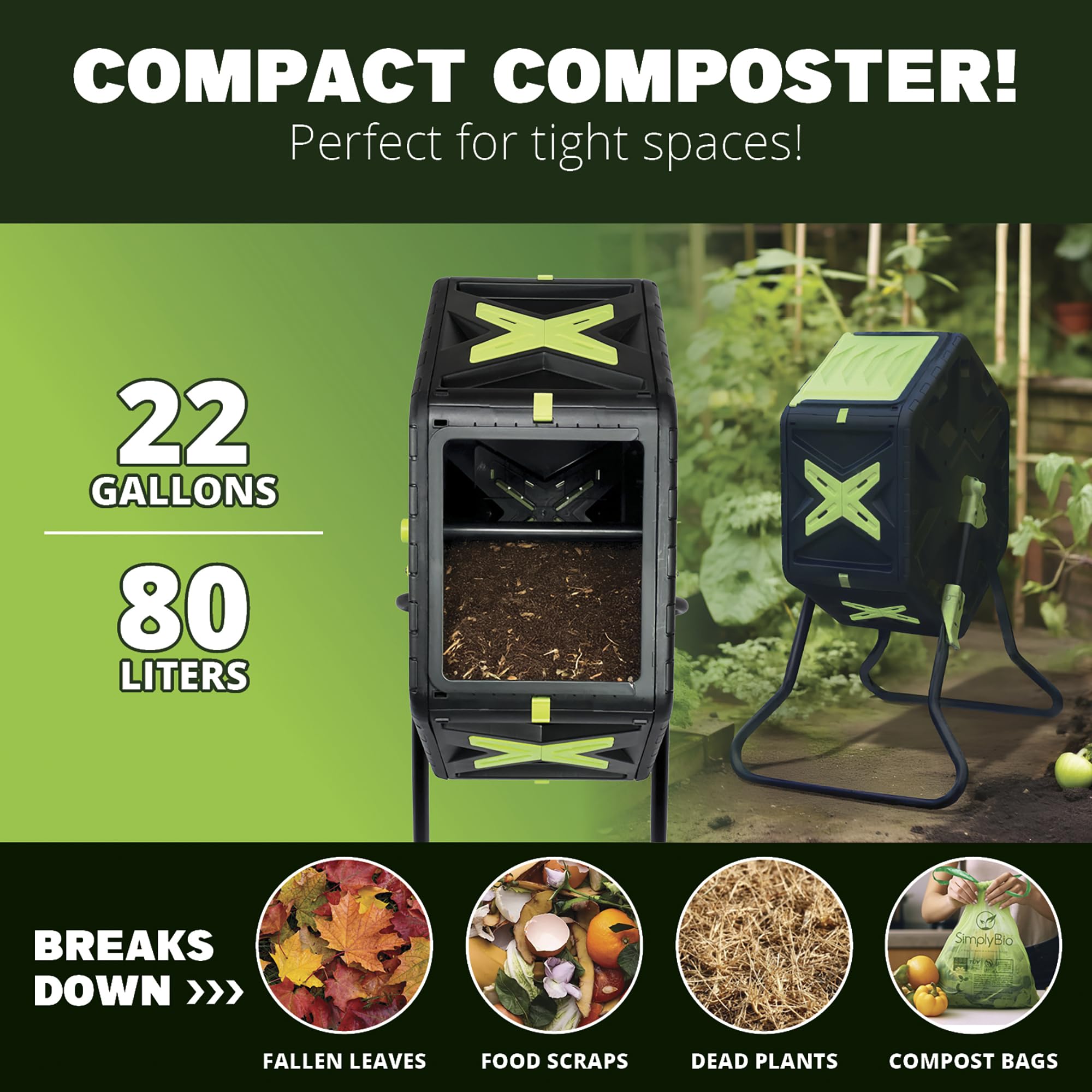 Simply Bio 22 Gallon Outdoor Compost Tumbler Bin – BPA-Free, Rotating Composting Bin for Garden, Yard, and Kitchen Waste, Fast Soil Creation, Weather-Resistant Outdoor Composter
