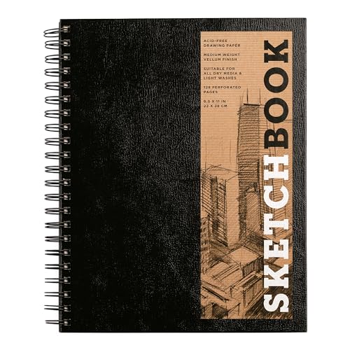 Sketchbook 8.5 x 11″ Black Spiral Hardcover Mixed Media Sketchbook for Drawing: Acid-Free Quality Paper (128 pages) (Union Square & Co. Sketchbooks)