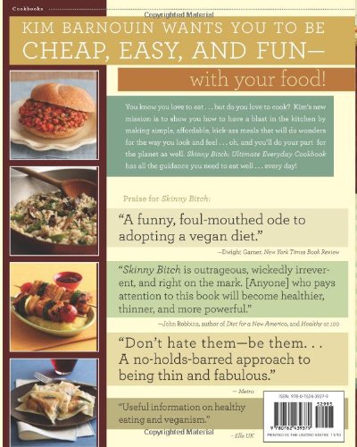Crazy delicious vegan recipes that are good to eat and great for your bod. After five years atop the Skinny Bitch phenomenon, author Kim Barnouin has grown as a cook, a nutritionist, and a mom. Now she delivers the ultimate cookbook that will be for everyone looking for a healthier way to feed themselves, their families, and friends. Kim’s emphasis is on easy, and her kick-ass recipes feature seasonal produce (no fake meat or hard-to-find ingredients) and provide a versatility of tastes and cuisines, from Mediterranean to California-fresh. With almost 150 recipes, full-color photos, complete nutritional breakdowns, and simple switch-outs for quick variations, it will be the new gotta have on any healthy bitch’s bookshelf. Whether readers are looking to gradually add more meatless dishes to their meals, or want to go all-out vegan, Skinny Bitch: Ultimate Everyday Cookbook will be their go-to source for getting their “bitch” on-in the kitchen.