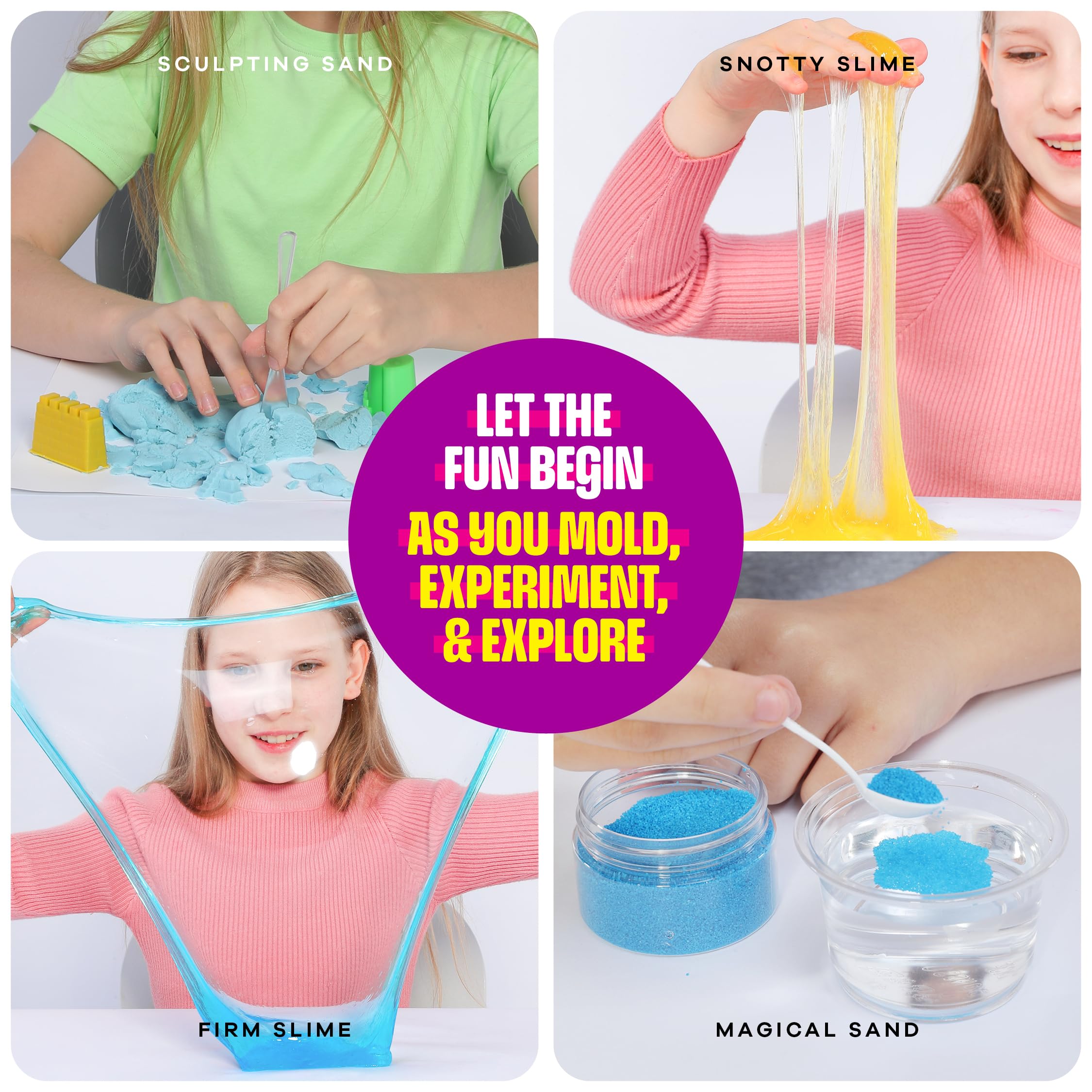 - ALL-INCLUSIVE KIT: Ready to go straight out of the box! This complete kit includes slimes, putties, sands, tools, and a step-by-step illustrated guide to make every experiment easy, exciting, and ready for kids to dive right in.