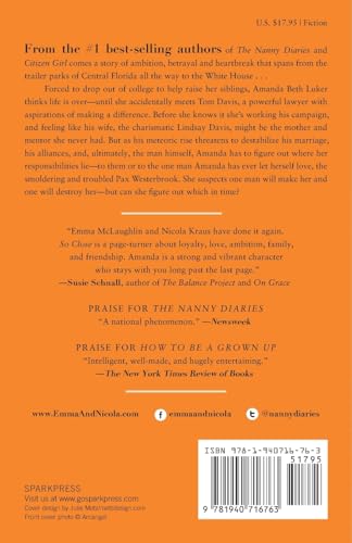 2016 USA Best Book Awards: Chick Lit/Women’s Lit, Finalist Named “Summer Book Pick” by Us Weekly * Redbook Magazine * Brit + Co * Buzzfeed * SheKnows * Bustle * From international #1 best-selling authors Emma McLaughlin and Nicola Kraus comes a story about a girl from the trailer parks of central Florida and the two powerful men who shape her life–one of whom will raise her up to places she never imagined, the other of whom will threaten to destroy her. Amanda Beth Luker has spent her whole life desperately looking for someone who can show her the way out of her trailer park Florida town. And then, finally, help arrives–in the form of Tom Davis, a successful lawyer with political aspirations who grew up just a few towns over from Amanda. But it’s his wife, Lindsay, who really captures Amanda’s imagination. Strong, smart, and determined, she gives Amanda something she’s never had–a role model. Meanwhile Amanda is introduced to the wealthy, charismatic, and deeply troubled Pax Westerbrook. He clearly desires Amanda, but if she gives in will that move her closer to the life she’s always dreamed of–or make it impossible? Amanda rides Davis’s political success all the way to Washington, where he becomes Senator and will later be tapped for president and even make a bid for the White House. But when Amanda starts to suspect, and later confirms, his moral indiscretions, her loyalty is tested. Will a girl from a trailer park even be believed if she goes public with damning information? Will she be willing to risk losing everything she’s gained?