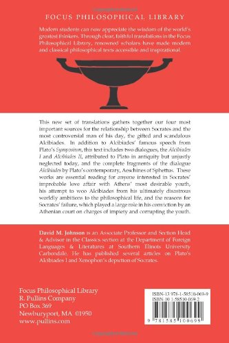Socrates and Alcibiades: Four Texts gathers together translations our four most important sources for the relationship between Socrates and the most controversial man of his day, the gifted and scandalous Alcibiades. In addition to Alcibiades’ famous speech from Plato’s Symposium, this text includes two dialogues, the Alcibiades I and Alcibiades II, attributed to Plato in antiquity but unjustly neglected today, and the complete fragments of the dialogue Alcibiades by Plato’s contemporary, Aeschines of Sphettus. These works are essential reading for anyone interested in Socrates’ improbable love affair with Athens’ most desirable youth, his attempt to woo Alcibiades from his ultimately disastrous worldly ambitions to the philosophical life, and the reasons for Socrates’ failure, which played a large role in his conviction by an Athenian court on charges of impiety and corrupting the youth. Focus Philosophical Library translations are close to and are non-interpretative of the original text, with the notes and a glossary intending to provide the reader with some sense of the terms and the concepts as they were understood by Plato’s immediate audience.