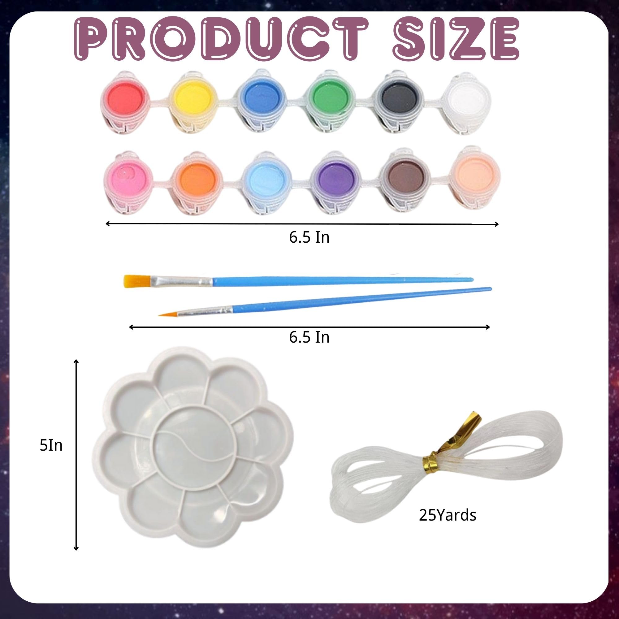 - This solar system project kit includes 10 foam balls of various sizes,3 foam stars, 12 colored paints, 2 paintbrushes, one rolls of fishing line, one paint tray palette and 15 claw nails for hanging. The perfect scientific DIY craft pack for completing the solar system model project.