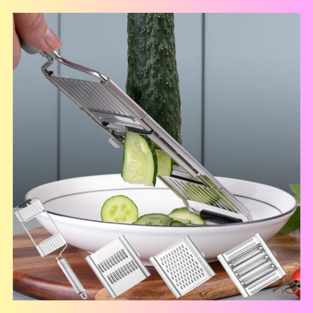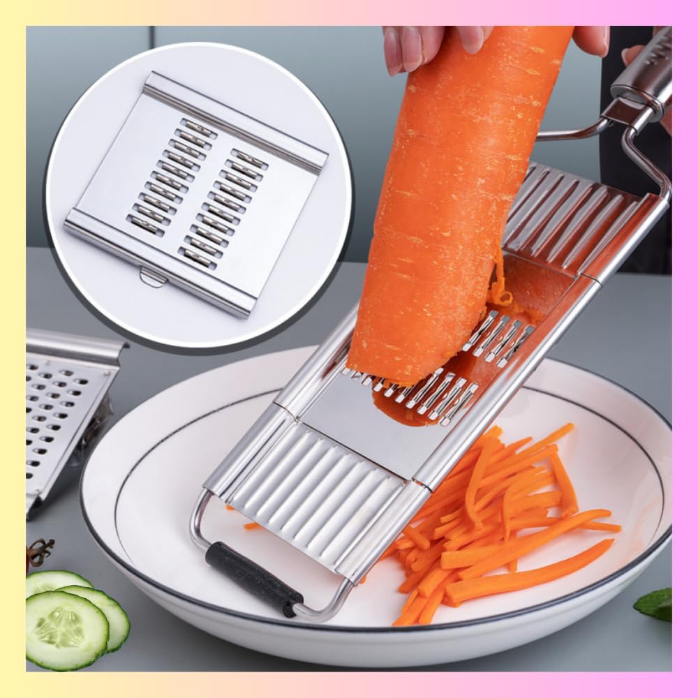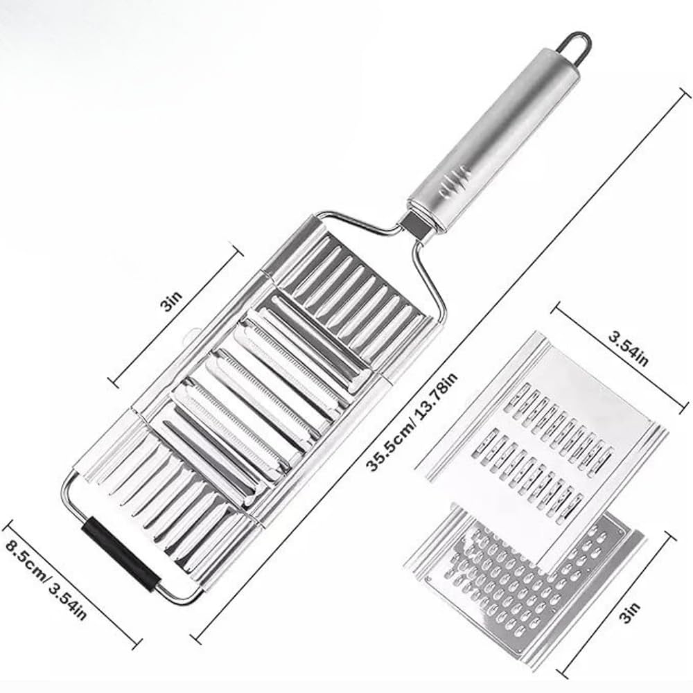 - Multifunctional: With our 3 in 1 grater stainless steel, Julienning, Grating, or Cutting fruits and vegetables is easy and fast. It works well for grating cheese and hard or soft vegetables, like cucumbers, cabbage, carrots, onions, potatoes, zucchini, and more.