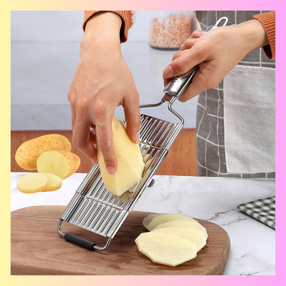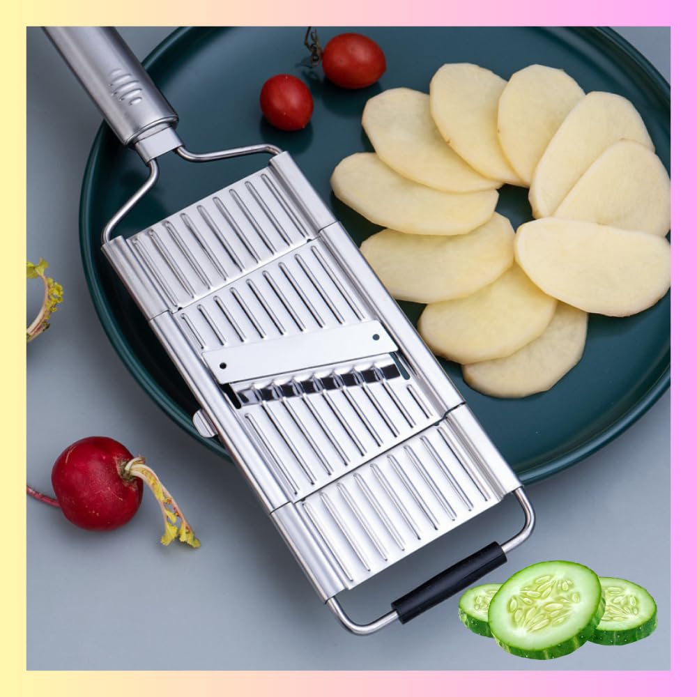 - Easy to use & Clean: This potato slicer, butter slicer, hand grater with handle is dishwasher safe and can be rinsed in water. After using, simply put the kitchen grater or the stainless steel blades under running water and can be easily cleaned. It is sharp, effective and easy to use.