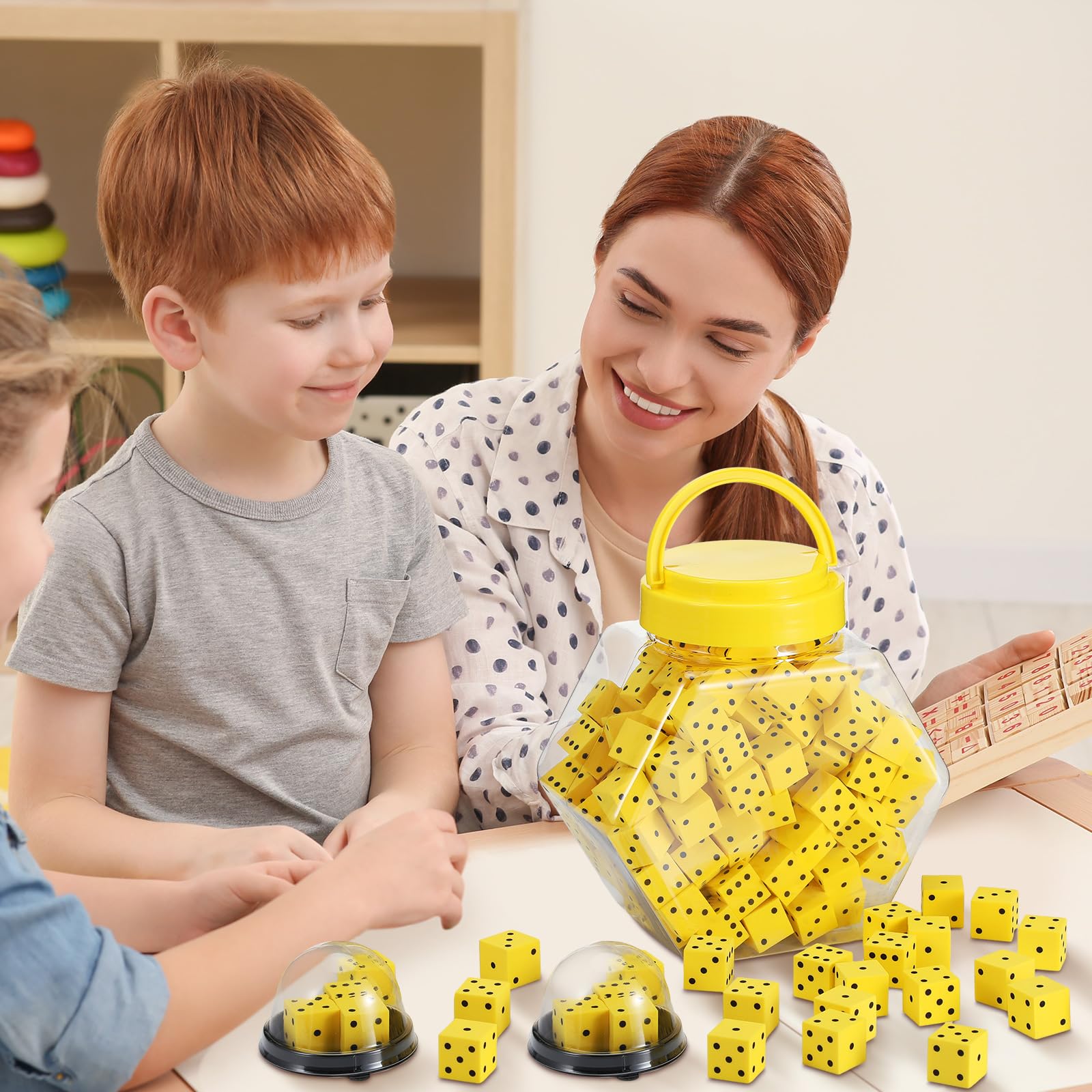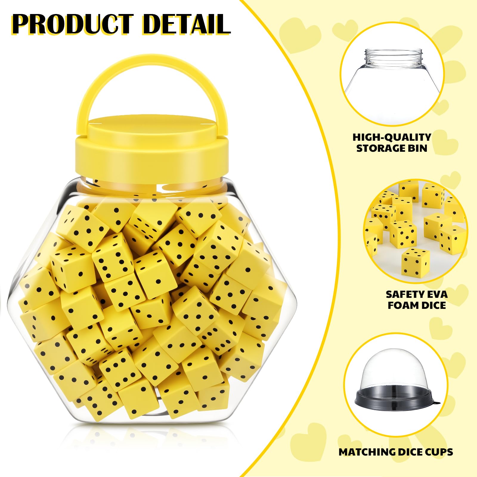 - Comprehensive Educational Kit for Diverse Classroom Needs: equip your classroom with this versatile foam dice set, featuring 200 vibrant yellow mini dice foam, 50 durable dice cups and 1 storage bucket; Nice for math games, probability lessons, and hands-on learning activities, all neatly stored in a reusable storage bucket