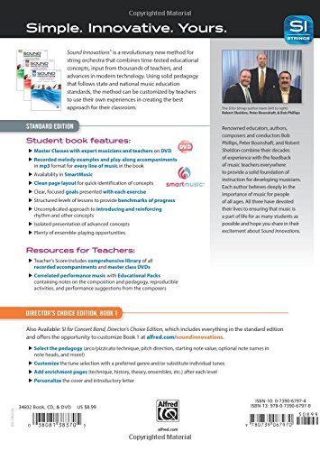 Sound Innovations for String Orchestra, Book 2 continues your student’s musical journey by teaching with a complete review of Book 1, and a segmented presentation of new concepts while introducing ensemble playing. Continue skill development with review, new keys, rhythms, tone development, and introductory scales and arpeggios. Following the unique Sound Innovations organization, the string orchestra method contains levels, each of which is divided into several sections that introduces concepts separately, providing benchmarks, assessment, and intermediate goals. The isolation of new concepts helps facilitate the understanding of more advanced material. Sound Advice sections throughout the Teacher’s Score assist with quick and easy-to-use tips and suggestions. Plenty of practice and performance opportunities are also provided in order to reinforce each lesson. MasterClass lessons with string ensemble videos and accompaniment recordings are available streaming at www.alfred.com/SIOnline from anywhere with internet access. Learn more at www.alfred.com/SIOnline. This title is available in MakeMusic Cloud. Sound Innovations by Alfred Music is a dream-come-true method for beginning concert band and string orchestra. Its infusion of technology provides an open-ended architecture of the first order. This unique blend of time-tested strategies and technology offer a great foundation for a successful learning experience.” —John Kuzmich, Jr., BandDirector.com”