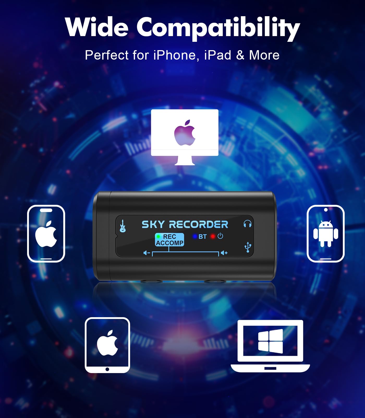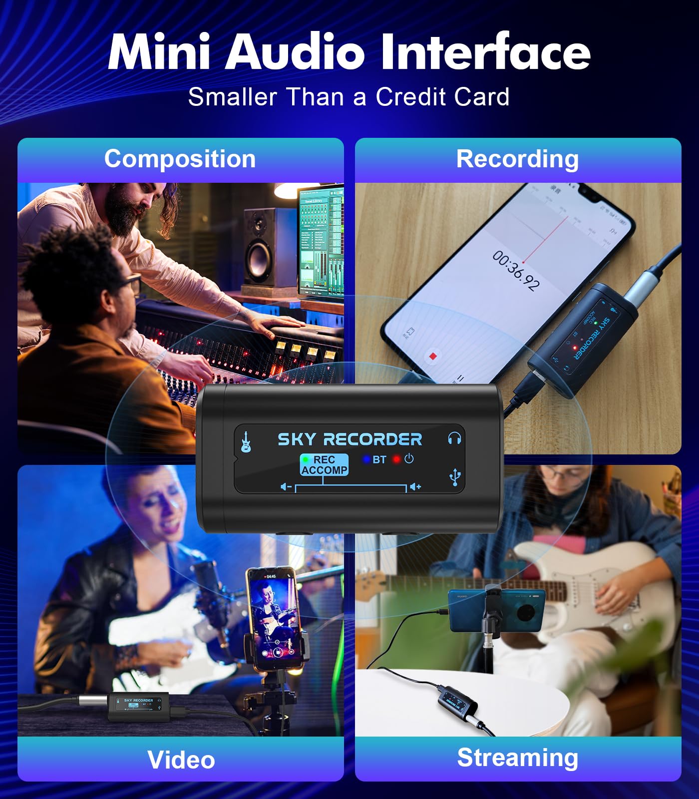 Sovvid Portable Audio Interface for Guitar with Bluetooth, Internal Sound Card, Compatible with iPhone, Mac, Laptop, Android–Plug & Play for Recording, Streaming, Playing