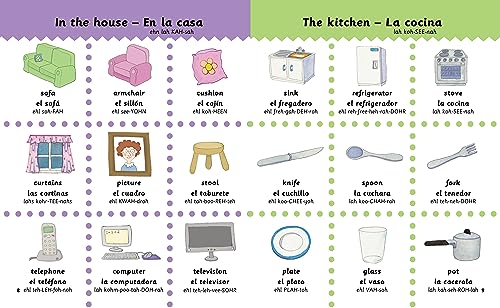 The perfect picture dictionary for kids and adults to learn Spanish! Anyone looking for learning books for kids will find pages filled with bright and colorful pictures and bilingual labels to help teach Spanish words and basic concepts to English speaking children. Parents, teachers, and gift givers will find: 350 illustrations of familiar objects Pictures labeled with the English word followed by its Spanish equivalent Phonetic spellings of Spanish words Words grouped by themes children will understand The perfect addition to your homeschool supplies This dictionary is a fun way for young English-speaking children to build a basic vocabulary in Spanish. It’s never too soon to learn a new language! What parents and educators are saying: I absolutely love this book! My 6-year-old and 4-year-old have started to speak a lot of the Spanish words from this book. The kids and I both love the sweet little illustrations–they’re very fun I am grateful for the pronunciation guide, since I am learning Spanish WITH the kids and need help in that area. It’s just a fun little book Perfect for an introduction for my homeschooled first grader this fall. Large variety of topics to choose from with adorable pictures!