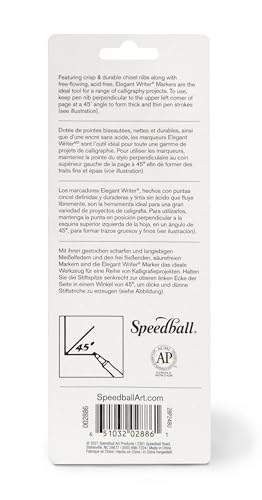 Ideal for creating beautiful invitations, holiday cards, gift tags and more, the Speedball elegant writer special occasion set makes it easy to form stunning calligraphic letters. Markers feature crisp chisel nibs and free-flowing, acid-free ink. Set includes (1) each of the red-fine point, green-medium point, silver-broad point and gold-broad point elegant writer markers. Helpful elegant writer instruction guide also included.