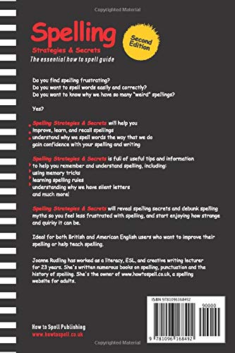 Spelling Strategies & Secrets helps you to improve, remember and learn spellings. It guides you through using memory tricks, words within words, noticing letter patterns and word families, and explains why spelling is the way it is. Also, spelling secrets and myths are revealed and debunked so you feel less frustrated by spelling. The aim of this book is to give you the confidence to spell well; to know that you can use these strategies to help you spell tricky words, and know that it is not cheating. We have so many variations of spelling and a huge vocabulary that we need little reminders to spell some words. It’s also a great book for teachers, and homeschoolers, to help you teach and explain spelling.This book is not about learning obscure words but about learning common, everyday words that are some of the most misspelled in British and American English. Joanne Rudling has been a teacher, lecturer and teacher trainer for twenty-three years and has written numerous books and online courses on spelling, punctuation, and the history of spelling. She’s the owner of the spelling website, www.howtospell.co.uk. Her Books For Adults, Parents and Teachers The Reasons Why English Spelling is so Weird and Wonderful (ebook) How to Spell the 20 Most Commonly Misspelled Words Punctuation Guide and Workbook QTS Spelling Strategies (for UK trainee teachers) For Kids, Parents and Teachers Spelling Rules and Patterns for Ages 10-11: To learn, improve & have fun with spelling and writing (for KS2 National Curriculum — years 5 and 6) Spelling Tricks and Rules for 3rd-4th Graders: To learn, improve, & have fun with spelling Spelling Rules and Memory Tricks for Ages 8-9: To learn & improve KS2 spelling and vocabulary (for KS2 National Curriculum — years 3 and 4) Spelling Patterns and Rules for 5th Graders: To learn, improve & have fun with spelling