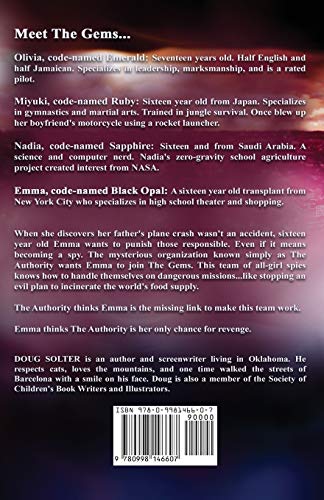 They offered Emma revenge… When she discovers her father’s plane crash wasn’t an accident, sixteen-year-old Emma wants to punish those responsible. Even if it means becoming a spy for a mysterious organization known as The Authority. They want Emma to join the Gems…four teenage girls with unique skills…who know how to handle dangerous spy missions around the world…like storming a mountain stronghold to stop terrorists from incinerating the world’s food supply. The Authority thinks Emma is the missing link to make this team work. Emma thinks The Authority is her only chance for revenge. Spies Like Me is the first novel in The Gems Young Adult spy thriller series, although all books in the Gems world can be read as standalone adventures. This is a fast-paced action story with diverse characters, cool spy gadgets, girl-power bonding, deep family secrets, ruthless villains, twists and turns, and a romance with a complex boy to figure out. Click or tap the Buy button and have the Gems sent to your mailbox! For ages 13 to adult.