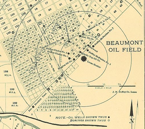 - This wonderfully preserved map centered on the Spindletop oilfield (then <span style=”FONT-STYLE: italic”>Beaumont Oil Filed </span>at Gladys City*, just south of Beaumont) marks the birth of the modern petroleum industry and beginning of the oil boom in Texas.
