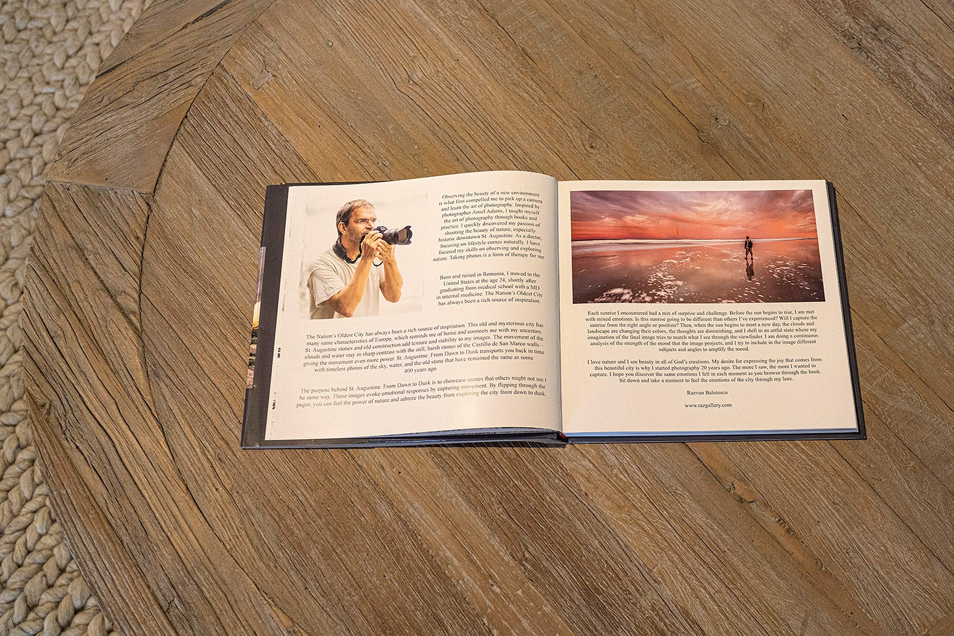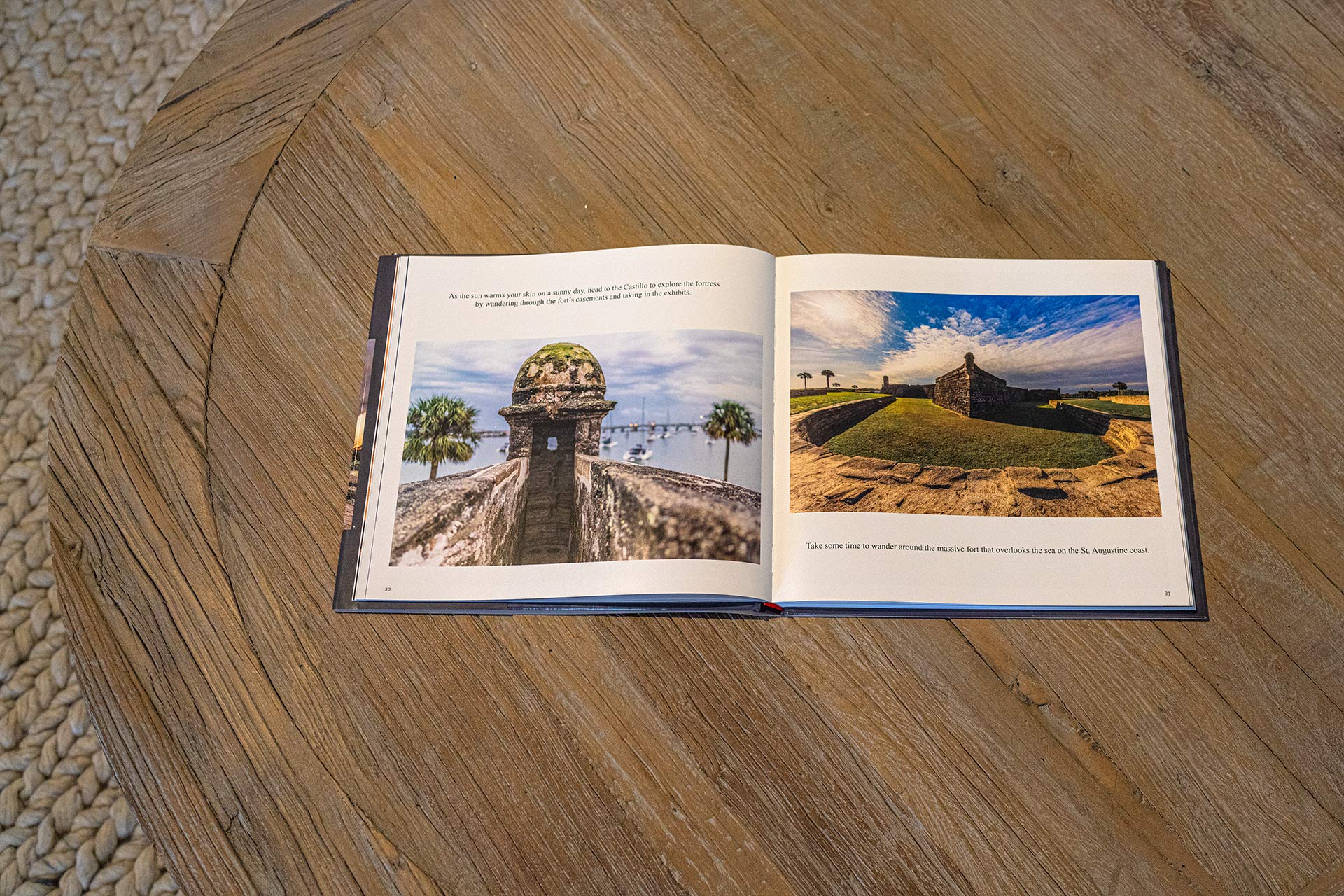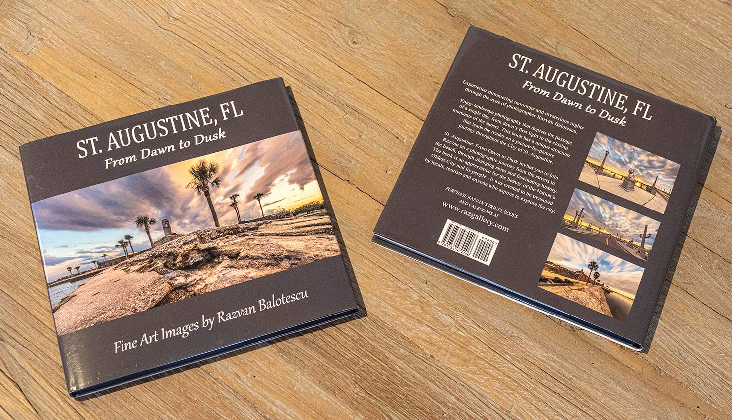 St. Augustine, Florida, From Dawn to Dusk coffee table book, hard cover. A photographic journey from the streets to the beach, through changing skies and fascinating history