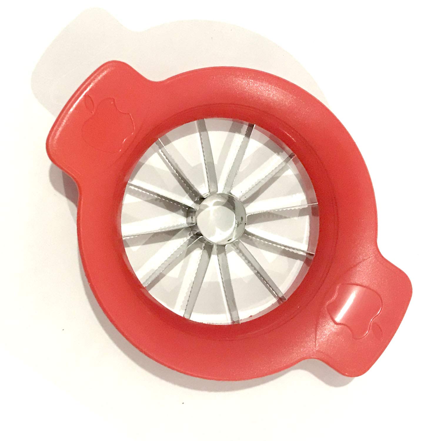 The stainless steel blades stay sharp over a lifetime of use. High quality food-grade stainless steel blades, guarantee long-term usage that will last years, rust & corrosion resistant. Sharp blade cuts the fruit quickly and effortlessly. Core and slice apples in one quick, comfortable step. Premium quality apple corer is specially designed for ease of use and hold. Apple Slicer cuts juicy apples down to the core. Creates the perfect wedges every time, with an oversized handles design that offer a comfortable. Are you always tired of cutting apples or pears with a knife? Now with Apple Slicer, just slice and core an apple or pear immediately in one second. Just place your fruit on a cutting board and position the slicer on top of the fruit, press down in one easy and swift motion, then you can get 12 beautiful apple slices. large stainless steel slicer with blade protection, slices apple and pear more Simply get 12 perfect slices