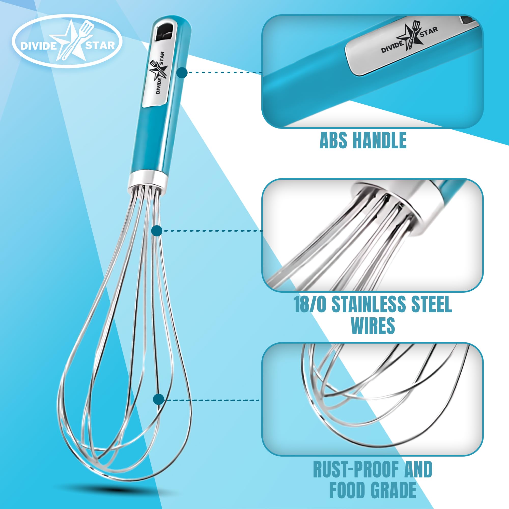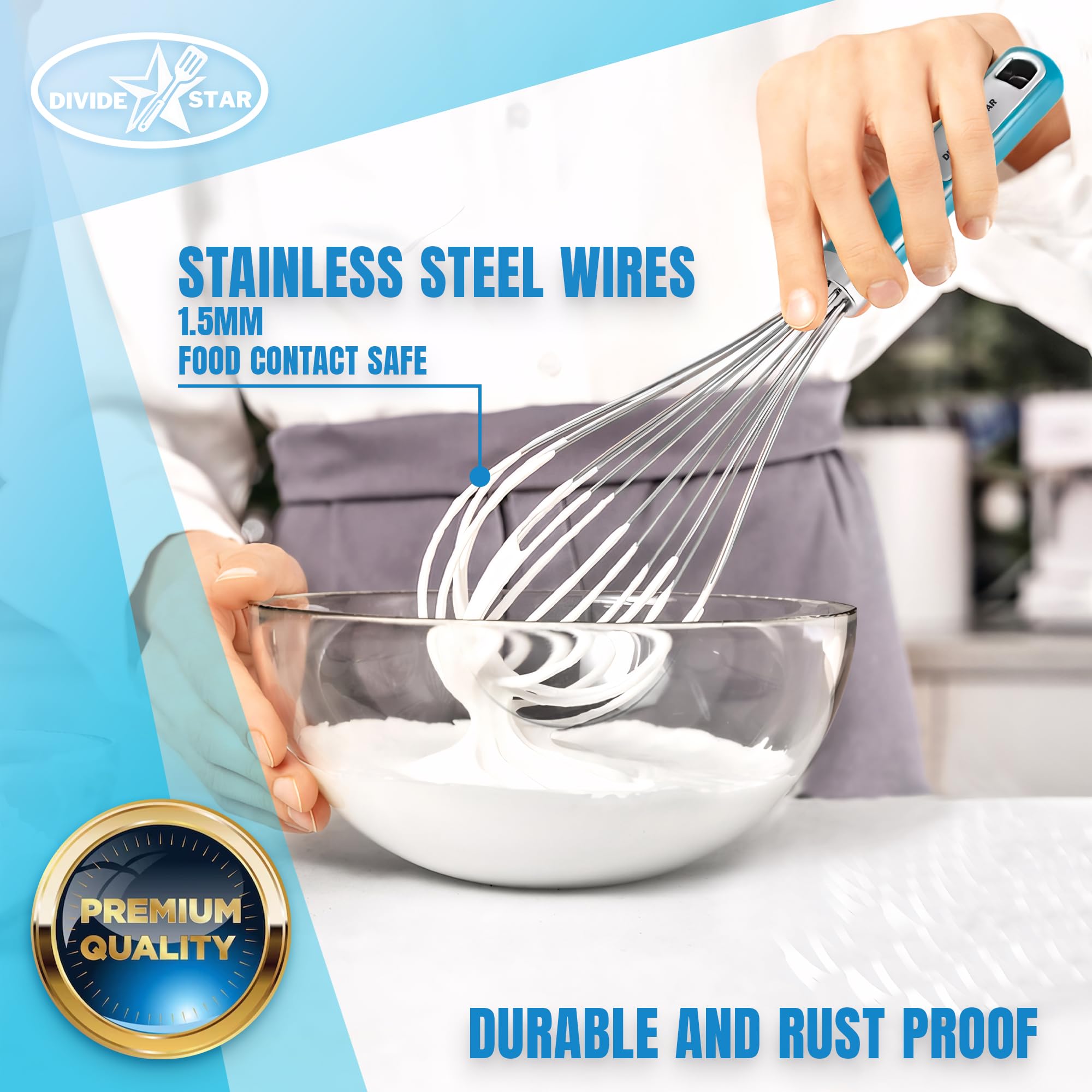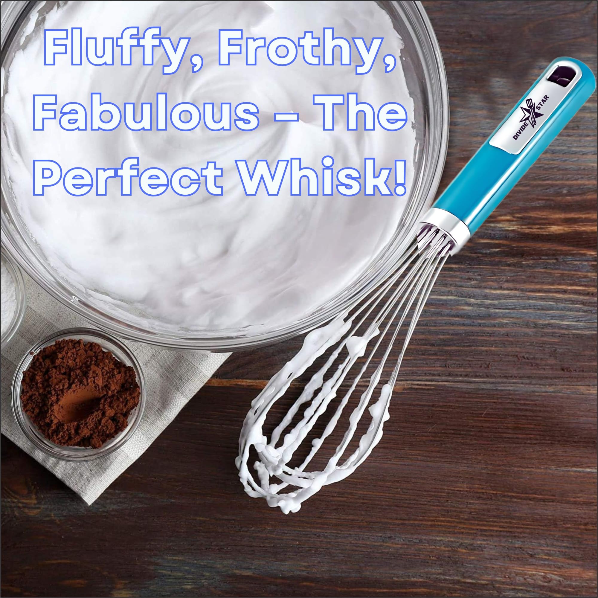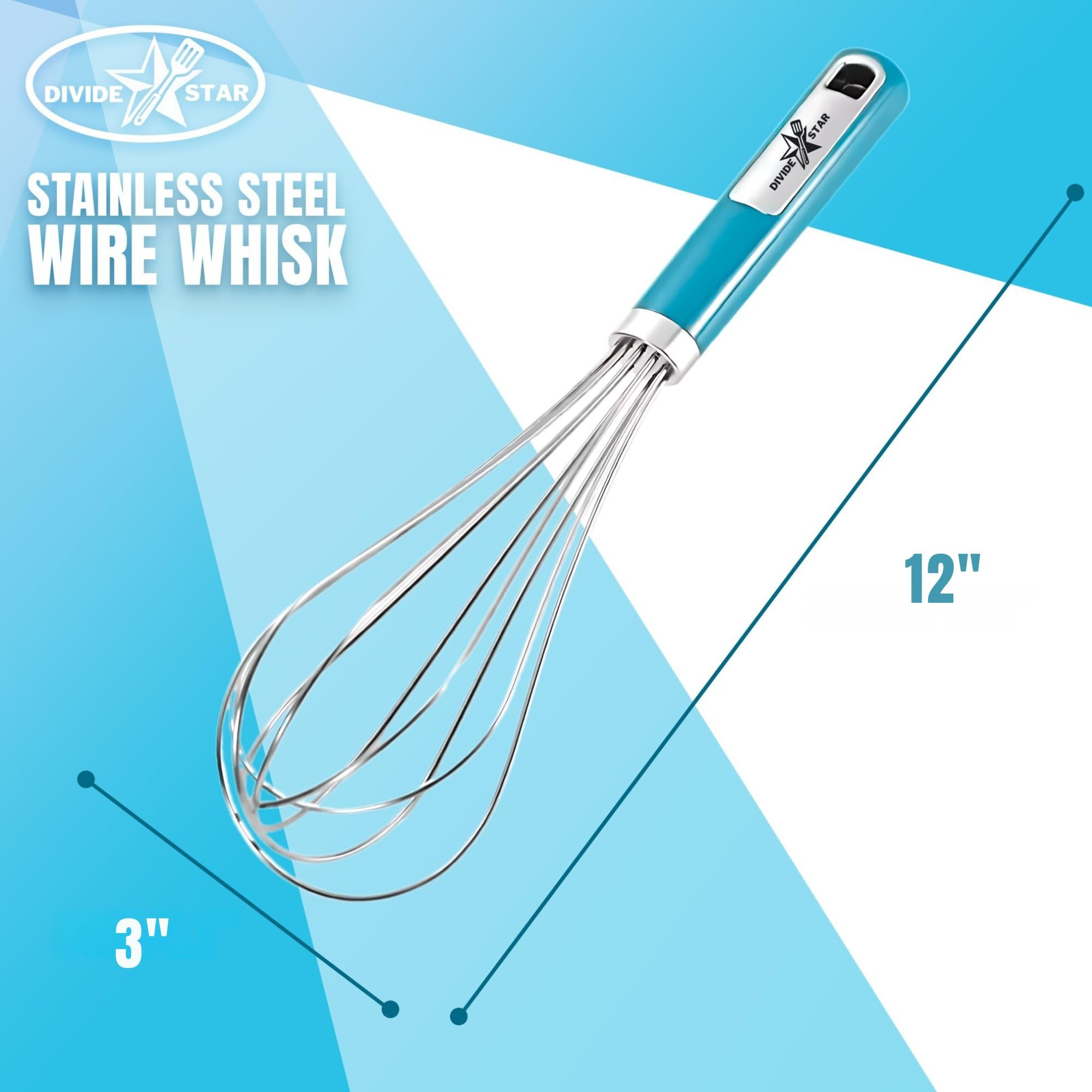 Stainless Steel Whisk for Baking & Cooking – Balloon Wire Hand Whisk with Ergonomic Handle, Dishwasher Safe Kitchen Tool for Mixing Eggs, Batter, Cream – Large 12-Inch – DIVIDESTAR (Blue)