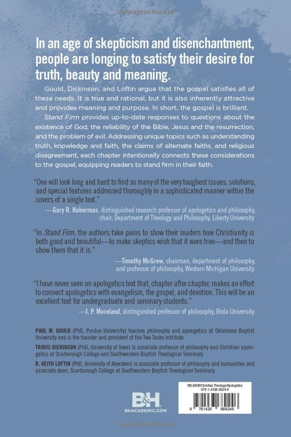 In an age of skepticism and disenchantment, people long for something that satisfies our mind’s search for truth and our heart’s desire for beauty and meaning. Stand Firm: Apologetics and the Brilliance of the Gospel argues that the gospel satisfies both of these needs. It is true and rational, but it is also inherently attractive and provides meaning and purpose. In short, the gospel is brilliant. It is brilliant, in one sense, because of the broad variety of evidences for its truth. But it is also brilliant given its beauty, goodness and the meaningful life it offers. The book provides up to date responses to questions about the existence of God, the reliability of the Bible, Jesus and the resurrection, and the problem of evil. It also treats unique topics such as understanding truth, knowledge and faith, the claims of alternate faiths, religious disagreement, etc. Each chapter attempts to connect these considerations with the gospel so that we may stand firm in our faith.