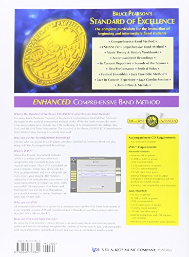 The Standard of Excellence ENHANCED Comprehensive Band Method Books 1 & 2 SECOND EDITION combines a strong performance-centered approach with music theory, music history, ear training, listening, composition, improvisation, and interdisciplinary and multicultural studies. Each book includes personalized access to Accompaniment Recordings, flash cards, plus a full-function recording studio, tuner, and more all powered by Pyware’s desktop or mobile INTERACTIVE Practice Studio. Students will find the new package makes practicing not only more fun but more effective, too! The result is one of the most complete band methods available anywhere.