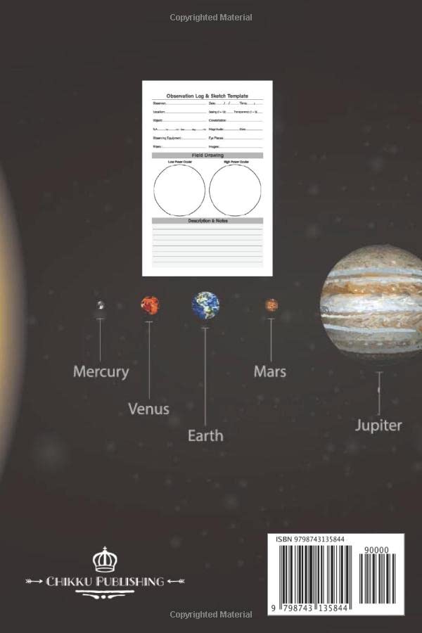 Stargazing Astronomers Log Book Are you new to stargazing? This logbook is tailor to help any new astronomer by recording what you see in the night sky. The built-in pages acted as a starting point to ensure smooth and easy recording. If you were to observe using a telescope or with bare eyes, jotting down what you see will help you learn so much faster. The more nights you spend recording your discoveries of the stars the more enjoyable you’re going to experience. Here’s what you can get inside: * Astronomy Observation Sheet to record Name, Date, Time, Scope, Seeing, Site & Notes. * Astronomy Observation Log with Name, Location, Page: Index, Details, Notes: Object, Eye Piece, Instrument Type. * Observation Log & Sketch Template to record Observer, Location, Seeing (1 – 10), Transparency (1 – 5), Object, Constellation, R.A, Magnitude/Size, Observing Equipment, Eye Pieces, Filters, Images. You can also do: 1) Field Drawing: Low Power Ocular 2) High Power Ocular, 3) Description & Notes More observations can be recorded on the line page. Good for 30-night stargazing recording. Get your logbook today for yourself or your kids and start comparing notes. Click the BUY NOW button on the right.