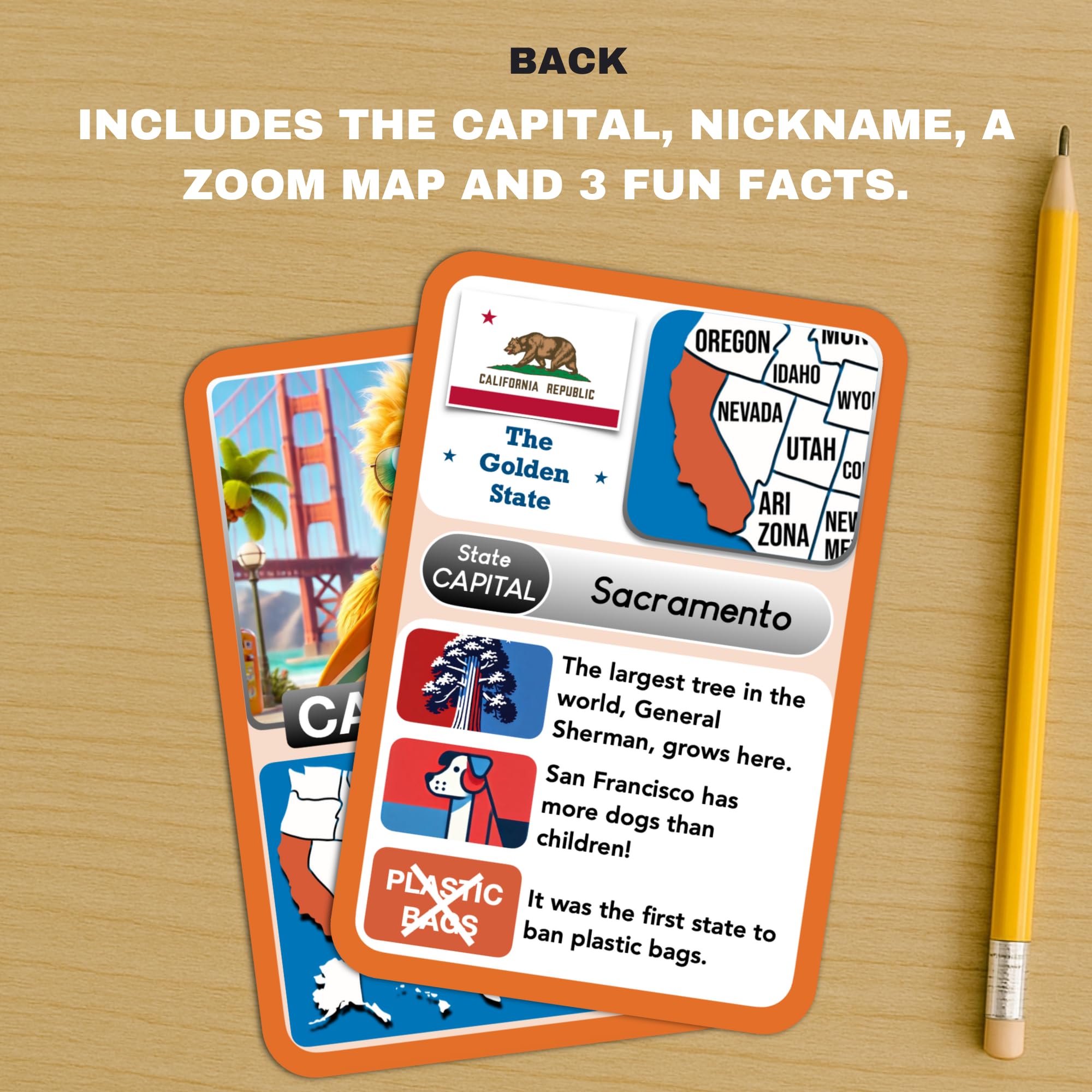 States Explorer – USA State Flashcards for Kids Ages 6+ | 50 United States Cards with Fun Facts, Capitals, Maps & Characters | Educational Geography Game | Perfect for Homeschool, Classroom & Travel