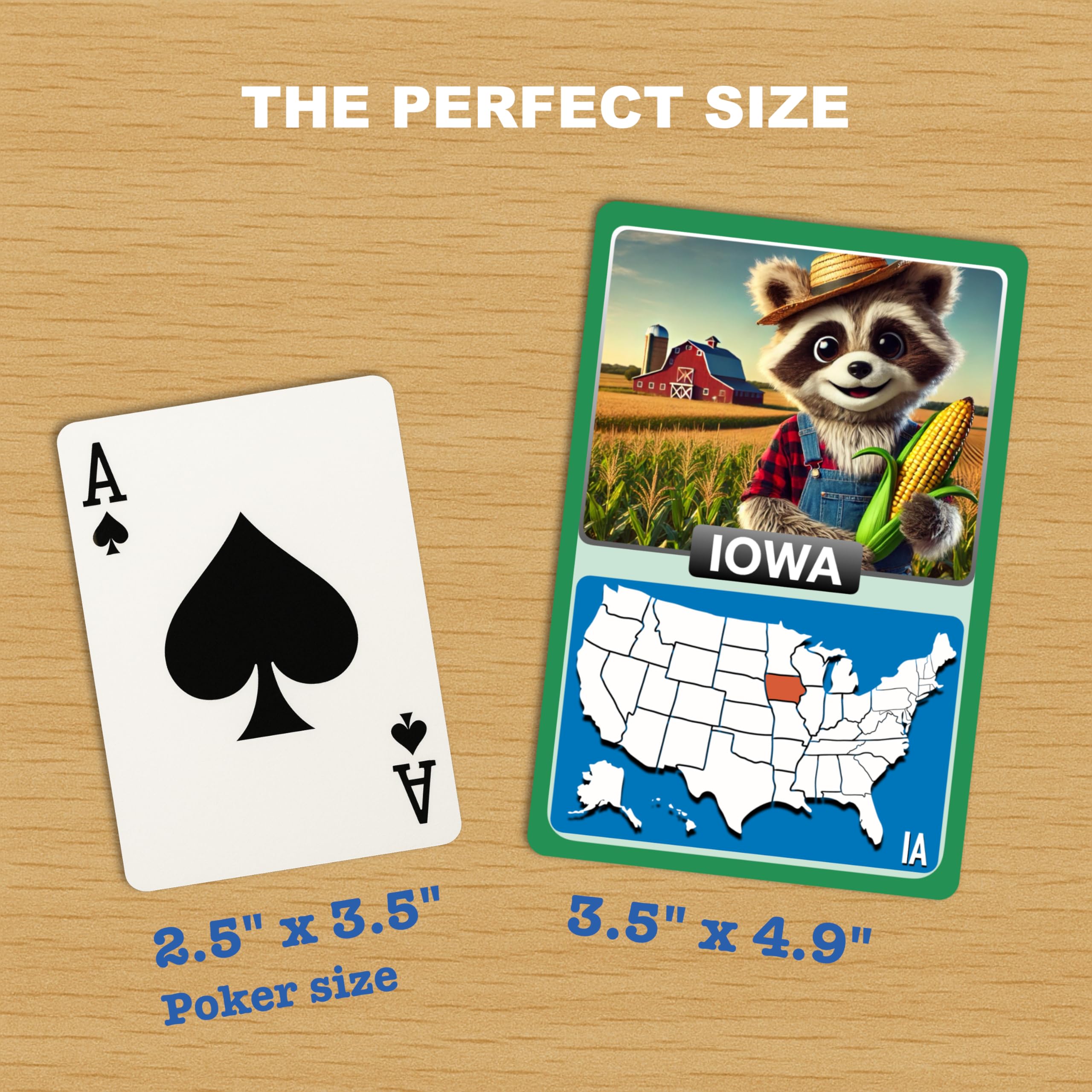 Learn all 50 U.S. states with fun characters, maps, facts, and capitals. Each card features a mascot, state shape, nickname, and 3 cool facts. Builds geography and memory skills through play, curiosity, and repetition. Perfect for kids ages 6+ at home, in class, or on road trips. Includes 50 state cards + 2 bonus cards in a sturdy, colorful box. Card size: 2.95″ x 4.72″ – great for little hands and easy to carry anywhere.