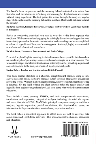 Features Worked examples from Education Clearly written, without mathematical formulae Well-structured, for beginners and intermediate readers Comprehensive chapter on categorical analysis – not just ‘Chi squared’ Effect sizes and confidence intervals Clear explanation of factor analysis Covers MANOVA and logistic regression Covers partial correlations, survival analysis and cluster analysis Introduces Bayesian statistics Reproduces a well-received short chapter on making presentations Data sets and case studies on the website