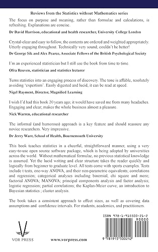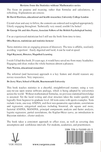Features Worked examples from sport Clearly written, without mathematical formulae Well-structured, for beginners and intermediate readers Comprehensive chapter on categorical analysis – not just ‘Chi squared’ Effect sizes and confidence intervals Clear explanation of factor analysis Covers MANOVA and logistic regression Covers partial correlations, survival analysis and cluster analysis Introduces Bayesian statistics Reproduces a well-received short chapter on making presentations Data sets and case studies on the website