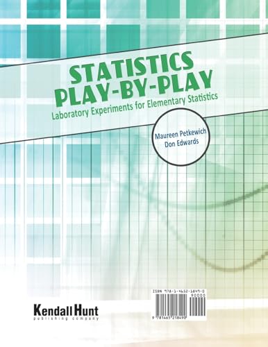 eBook Version You will receive access to this electronic text via email after using the shopping cart above to complete your purchase. Statistics Play-by-Play: Laboratory Experiments for Elementary Statistics features twelve comprehensive laboratory experiments for the increasingly popular laboratory-based introductory statistics course. Statistics Play-by-Play includes classroom tested and proven experiments ranging from sampling a population to using regression for prediction to inference for a population proportion. Available in print and eBook formats, Statistics Play-by-Play: Laboratory Experiments for Elementary Statistics: Includes introductions, questions for thought, materials, methods, results, and references for all laboratory exercises. Integrates Reality Check vignettes that reinforce important concepts and help apply concepts to real life for today’s students. Features perforated results and discussion questions sheets to notate the results of laboratory exercises and encourages students to apply the results to real-world scenarios.
