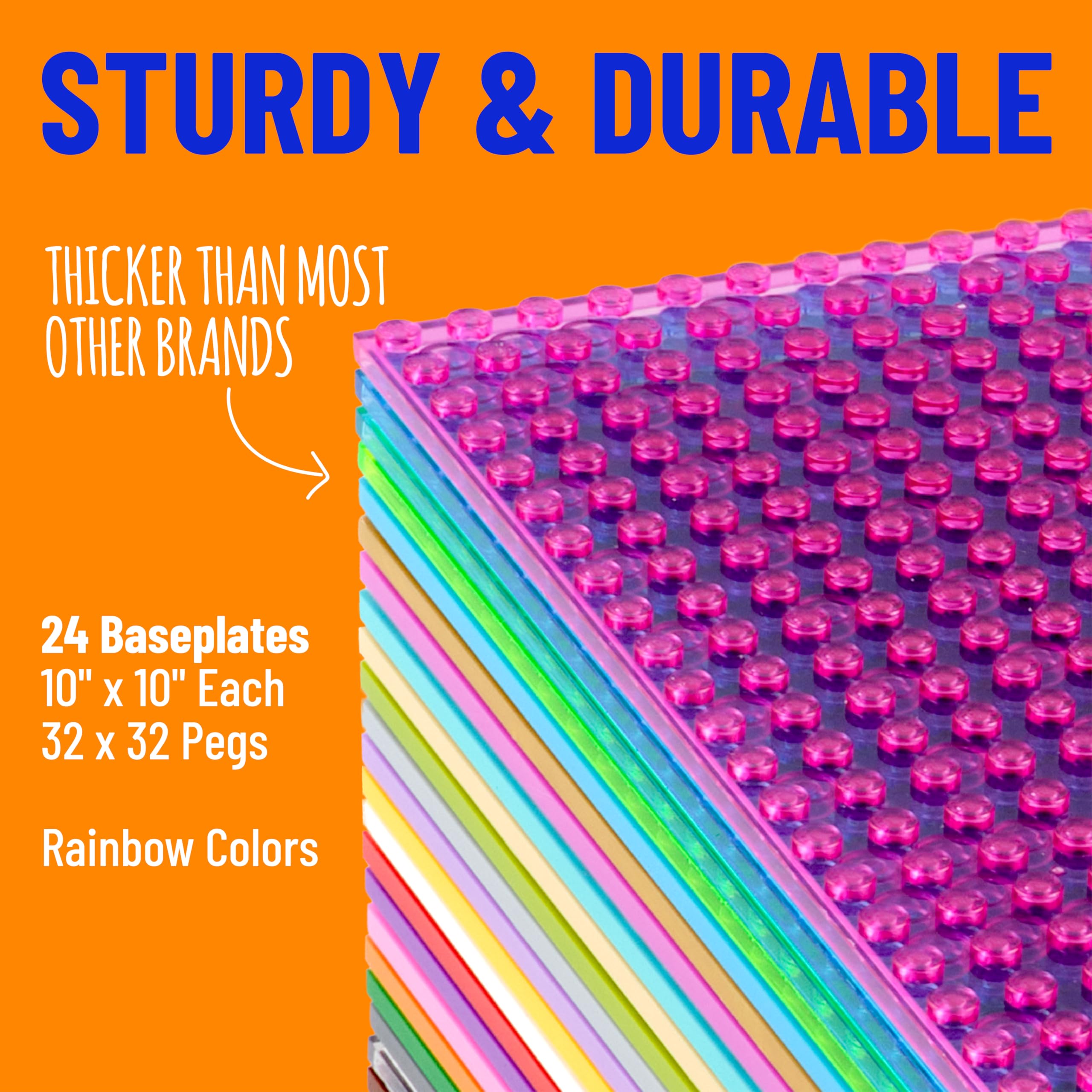 Strictly Briks Classic Compatible with Lego Baseplate 10x10-24 Pack Stackable Baseplates with 32 x 32 Studs, Mats, Bases, Boards, Sheets - Compatible with All Major Brands, Rainbow Colors
