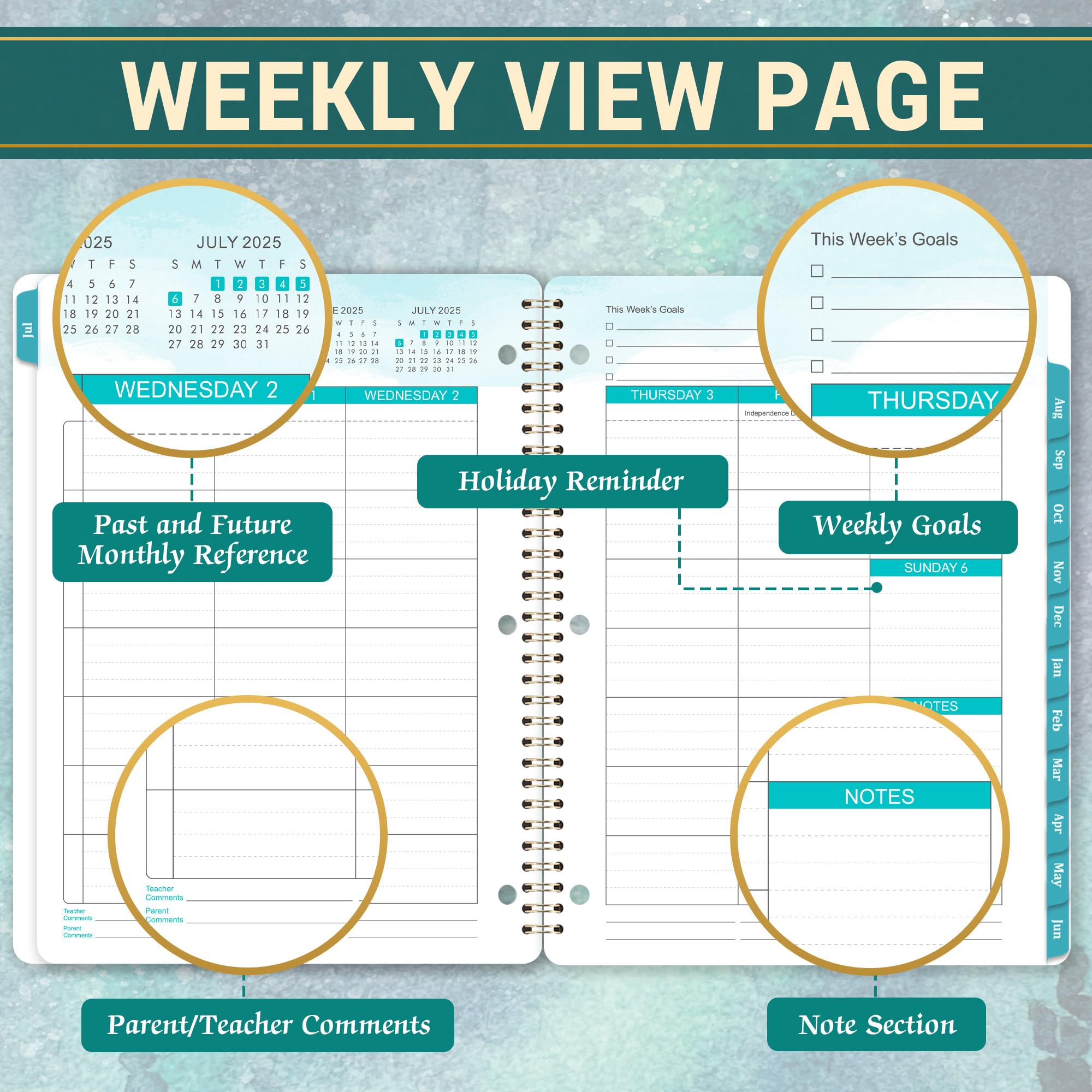 - Professional Design – 9″ x 11″ Weekly Lesson Planner | 2025-2026 School Planner| 2025-2027 Holidays | Notes Pages | 368 Stickers | Thick Paper | Round Corner Design | 12 Monthly Tabs | Twin-Wire Binding | Flexible Cover