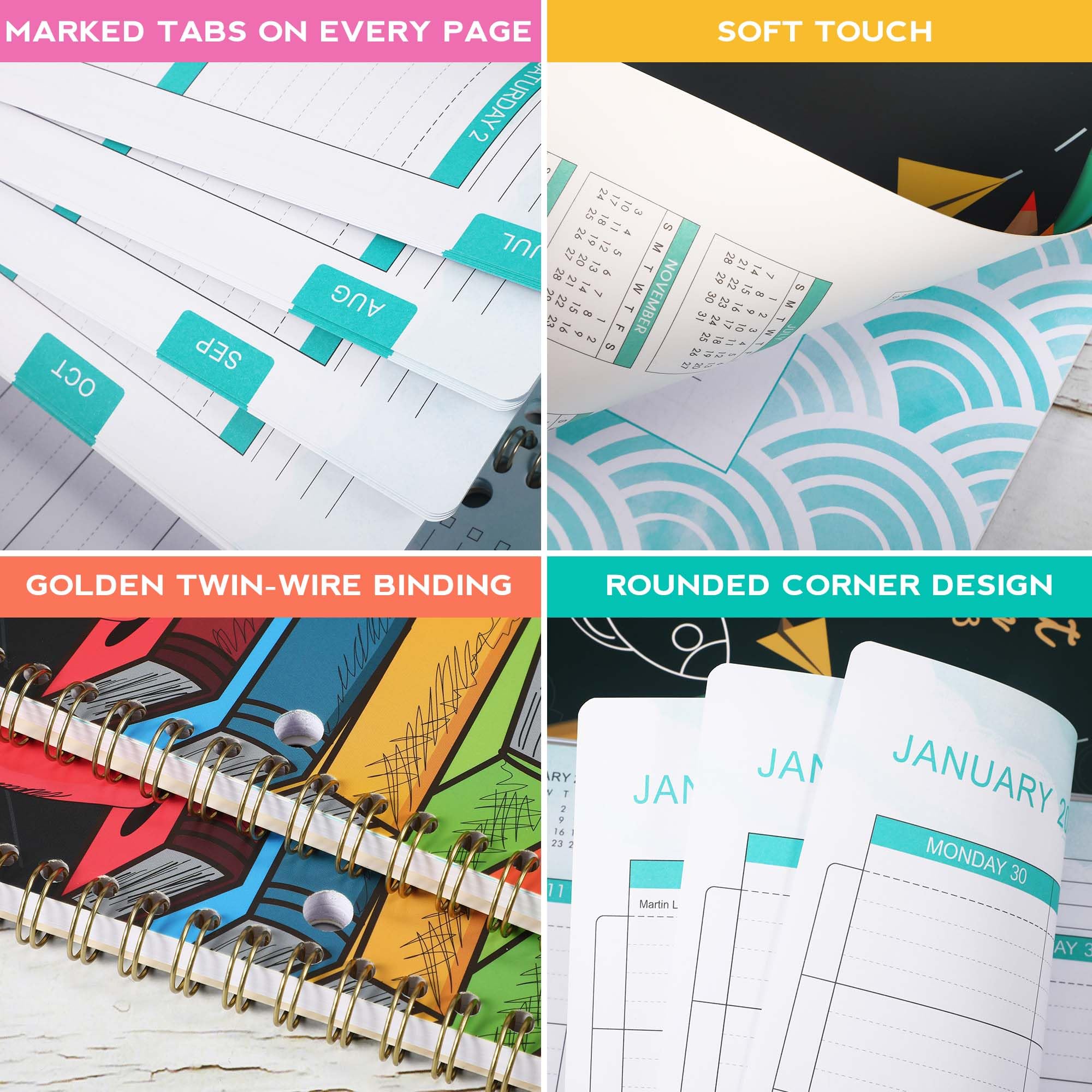 - High-quality Paper – Our thick papers of this student planner offer smooth writing experiences and it can plan your schedule without any fear of ink feathering and seepage. Our improved, high-quality paper is designed for seepage proofing, which keeps your plans neat and legible