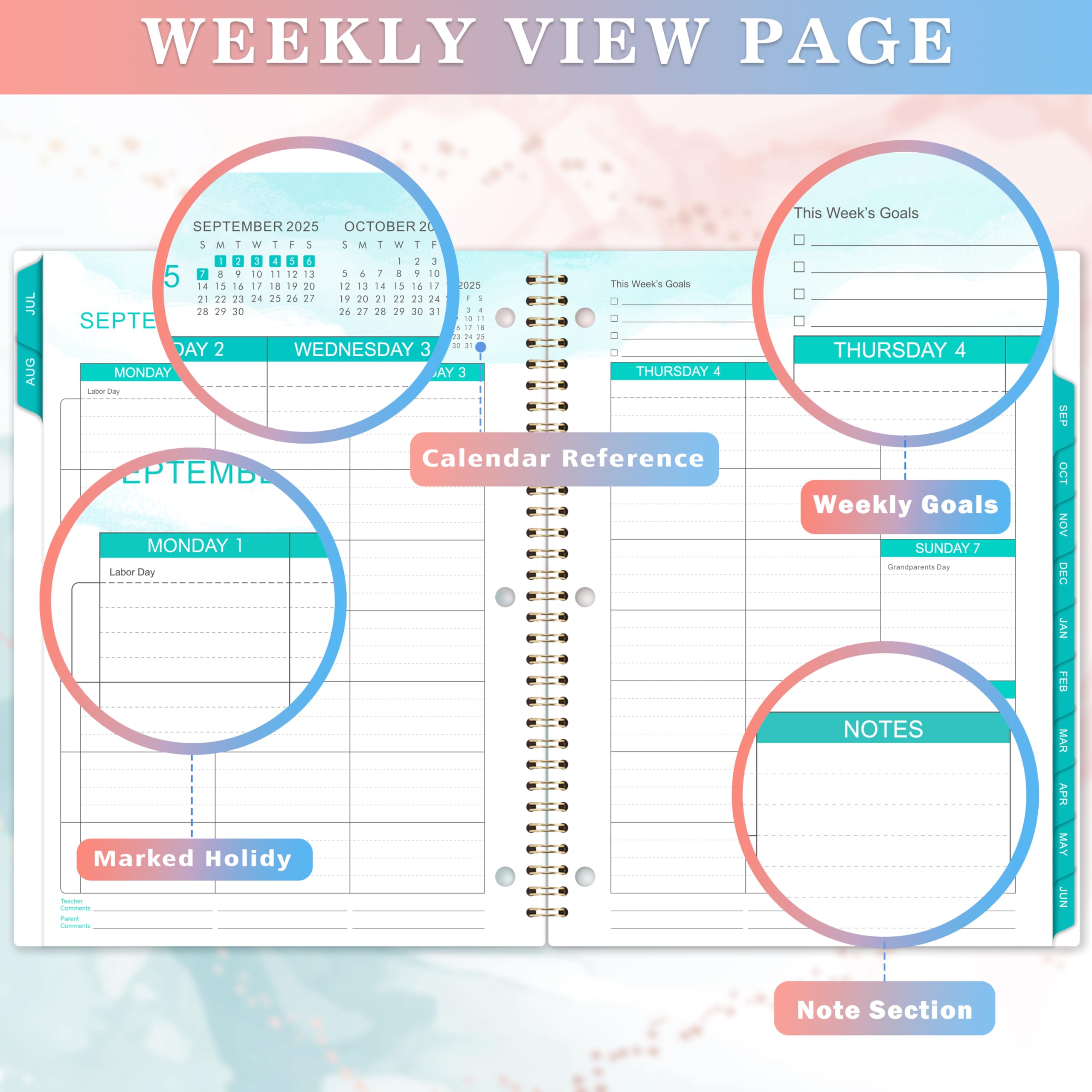 - STUDENT PLANNER – Planner from July 2025 – June 2026, this student planner for students features 12 months of monthly and weekly pages for easy academic year planning. Coated tabs make it more convenient for using. It’s convenient to take in a school bag or handbag, suitable for school.