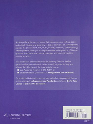 The Anders gedacht Ubungsbuch provides varied activities, correlated with the text. It provides explanations in English of grammatical concepts covered in the book, as well as listening comprehension practice and further work with audio texts.