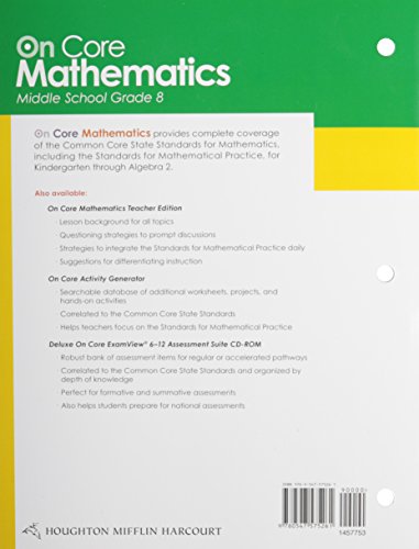 Student Worktext Grade 8 2012 (Houghton Mifflin Harcourt On Core Mathematics)