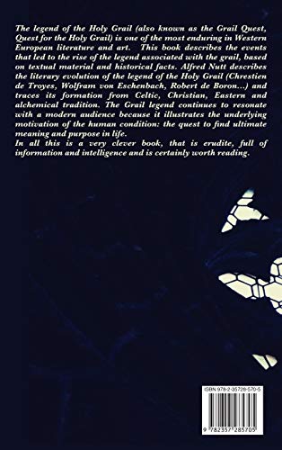 The legend of the Holy Grail (also known as the Grail Quest, Quest for the Holy Grail) is one of the most enduring in Western European literature and art. This book describes the events that led to the rise of the legend associated with the grail, based on textual material and historical facts. Alfred Nutt describes the literary evolution of the legend of the Holy Grail (Chrestien de Troyes, Wolfram von Eschenbach, Robert de Boron…) and traces its formation from Celtic, Christian, Eastern and alchemical tradition. The Grail legend continues to resonate with a modern audience because it illustrates the underlying motivation of the human condition: the quest to find ultimate meaning and purpose in life. In all this is a very clever book, that is erudite, full of information and intelligence and is certainly worth reading.