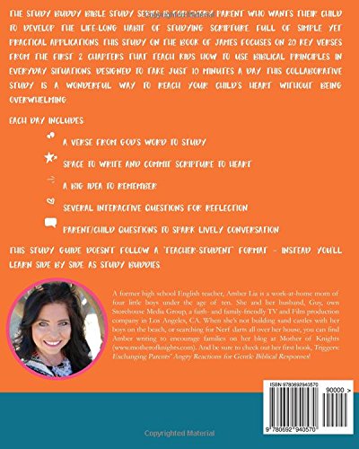 The Study Buddy Bible Study series is for every parent who wants their child to develop the life-long habit of studying Scripture. Full of simple yet practical applications, this study on the book of James focuses on 20 key verses from the first 2 chapters that teach kids how to use biblical principles in everyday situations. Designed to take just 10 minutes a day, this collaborative study is a wonderful way to reach your child’s heart without being overwhelming. Each day includes: A verse from God’s Word to study Space to write and commit Scripture to heart A big idea to remember Several interactive questions for reflection Parent/child questions to spark lively conversation This study guide doesn’t follow a “teacher-student” format — instead, you’ll learn side by side, as Study Buddies!