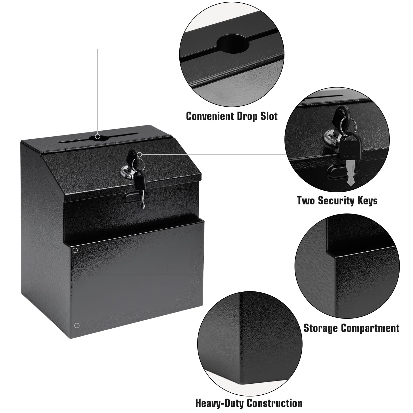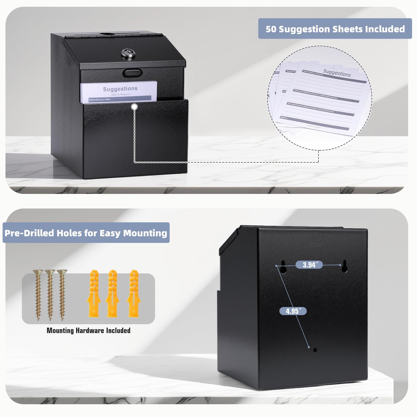 - SOLID CONSTRUCTION: Our suggestion box with slot is constructed from heavy-duty steel material and features extra phosphating rust-proof technology, ensuring long-lasting durability