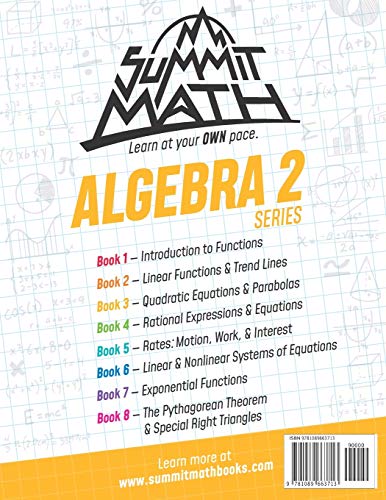 This textbook series supports both independent study and classroom learning, empowering students to learn at their own pace, whether working individually or collaboratively. The author makes each concept easy to understand and actively engages students in a step-by-step process of building genuine understanding, rather than memorizing formulas without knowing why they work. With careful pacing, clear explanations, and a detailed answer key for timely feedback and helpful guidance, the uniquely scaffolded approach allows students to learn math anywhere, at school or at home. Written by a teacher with over 20 years of experience, each feature is designed to benefit students. Published as separate books instead of a single textbook, students feel a sense of achievement when they finish each book, making learning feel less intimidating. Each lightweight book has 2 parts. The first half uses small steps to guide students through the process of constructing each concept, while the second half provides additional practice to reinforce learning and improve retention. Every section includes an answer key to provide teacher-like feedback that helps students keep moving forward. This curriculum is named Summit Math to reflect the author’s belief that learning is like hiking. Anyone can reach the summit, at their own pace, if they keep taking small steps. Book description: Discover how to solve quadratic equations that cannot be factored and then learn about parabolas. In this book, you first learn the method of Completing the Square and then the quadratic formula. You then learn how to graph a parabola by finding its vertex and intercepts. Near the end of the book, you will apply what you have learned about quadratics to analyze a variety of real-world scenarios. The final topic is an introduction to quadratic inequalities. This book builds on Algebra 1: Books 5 and 7 and Algebra 2: Book 1. Book 3 Contents: Introduction to quadratic functions Factoring review Review radical expressions The imaginary number Quadratic equations Solving quadratic equations by completing the square Solving quadratic equations with the Quadratic Formula The vertex of a parabola Graphing parabolas Scenarios that involve quadratic functions Graphing quadratic inequalities Cumulative Review Answer Key