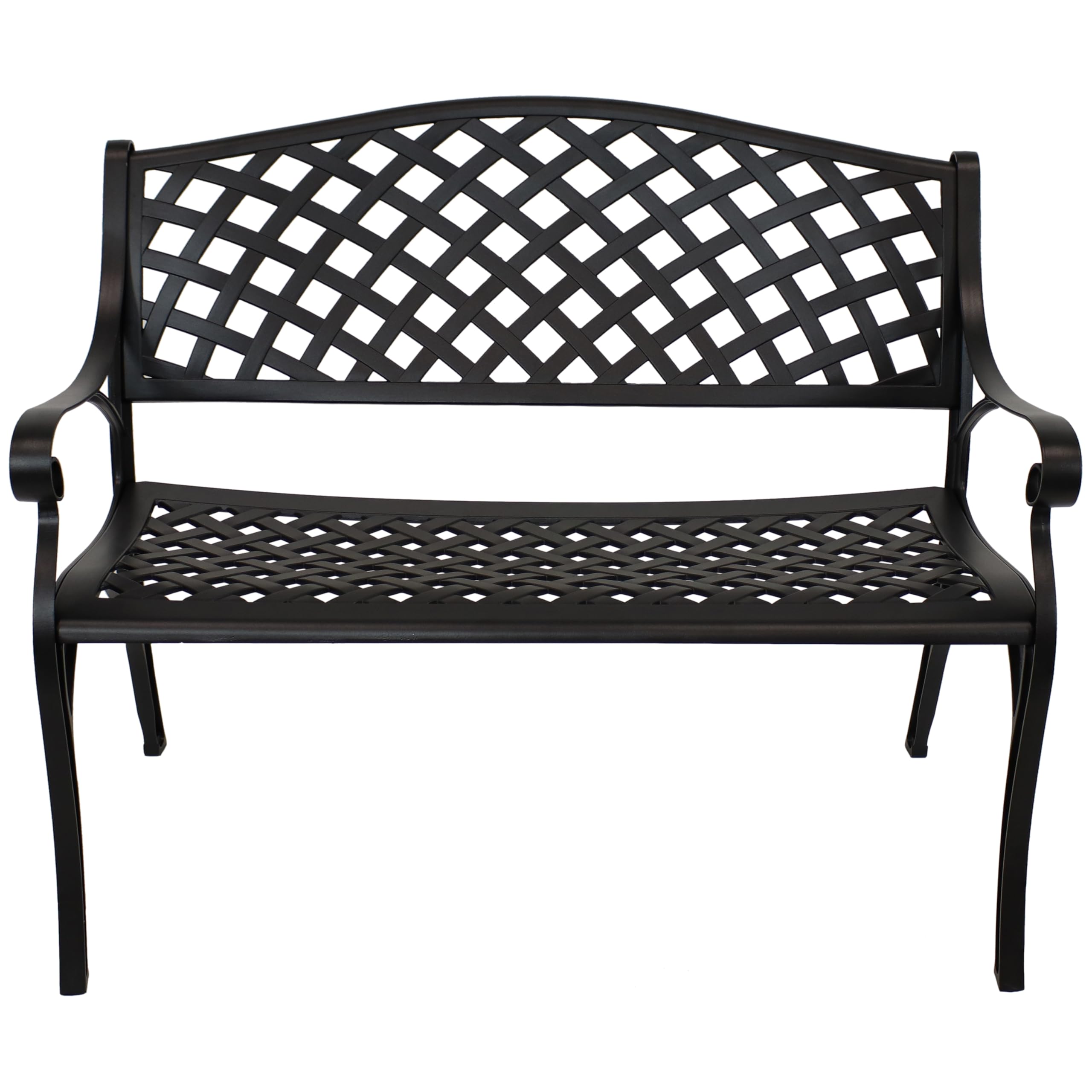Sunnydaze 2-Person Cast Aluminum Garden Bench with Checkered Design - 615-Pound Weight Capacity - 39-Inch W - Black