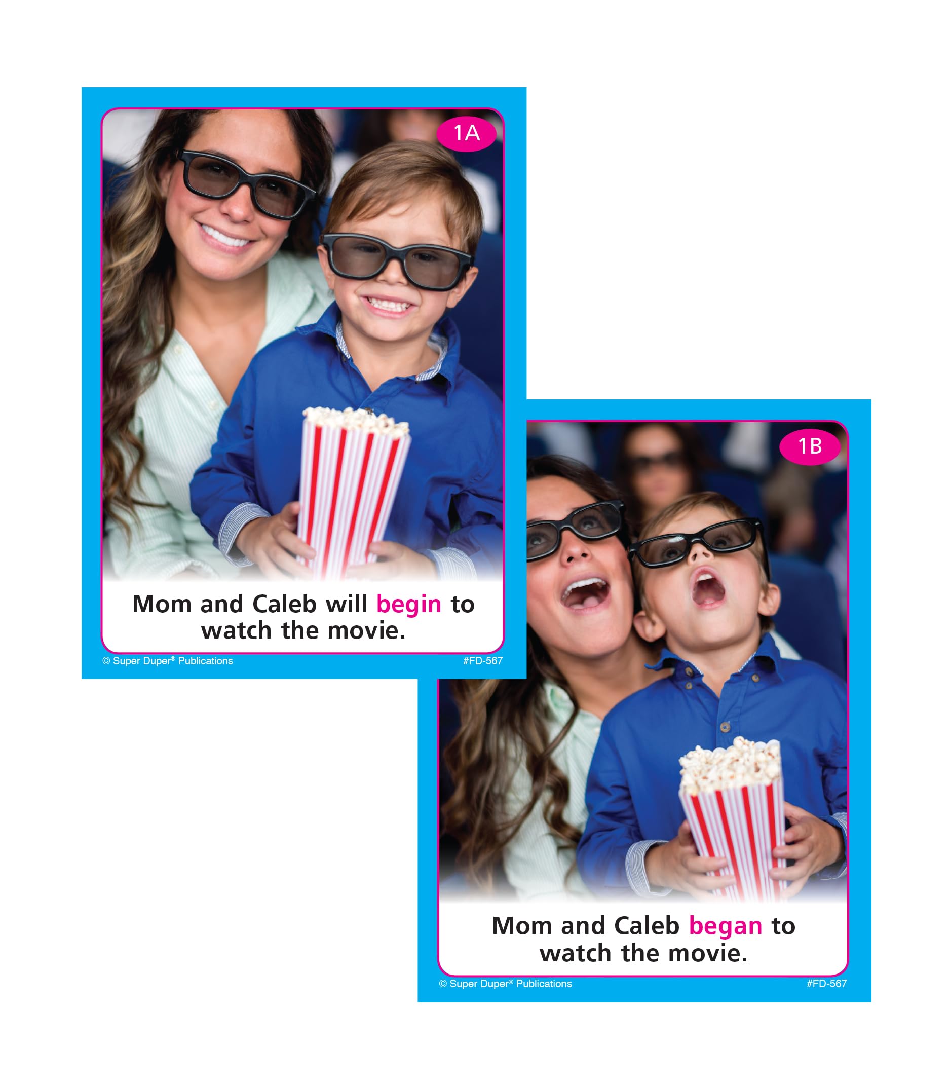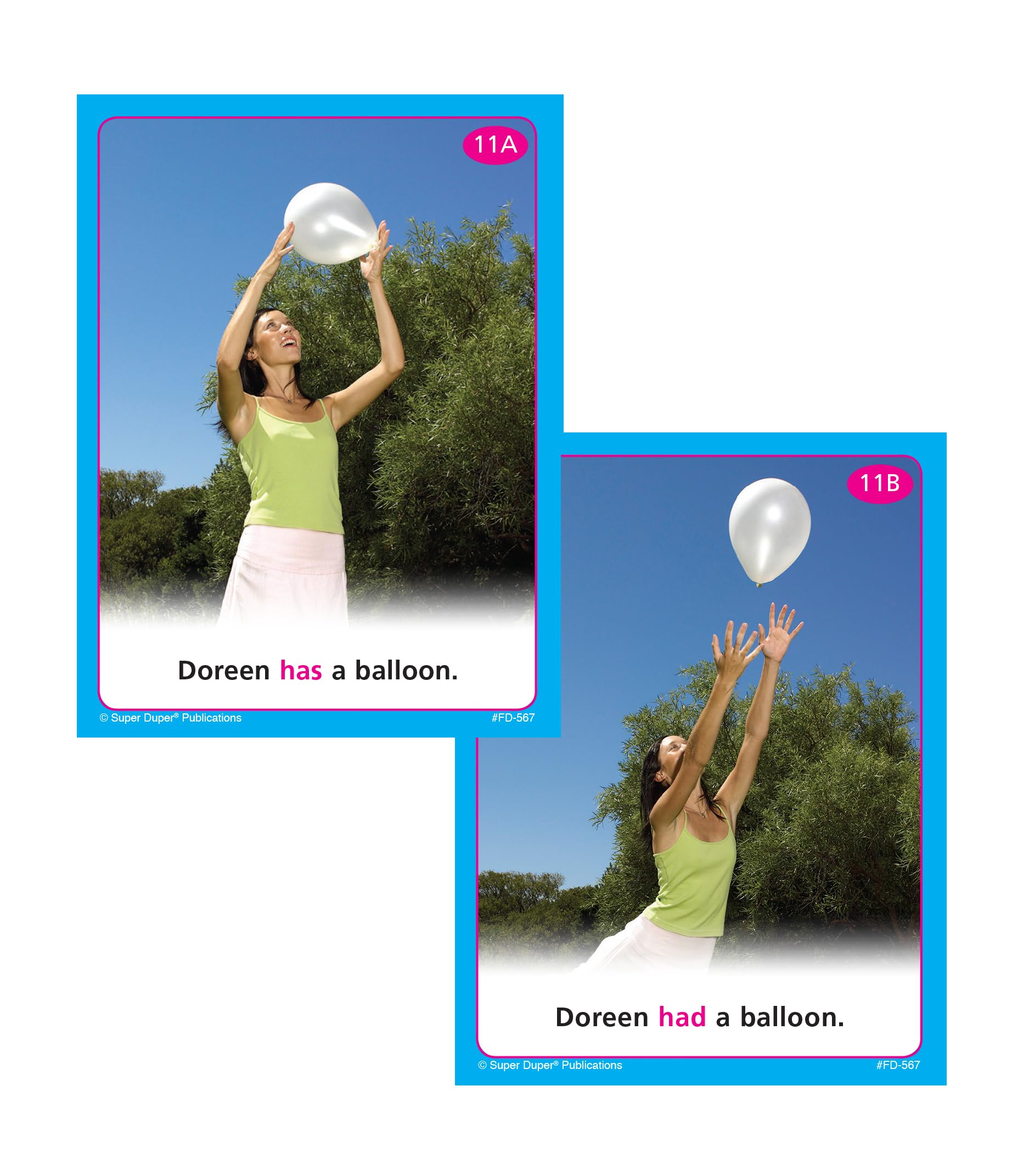 - 26 Pairs of photo Irregular Verbs (3″ x 4″)