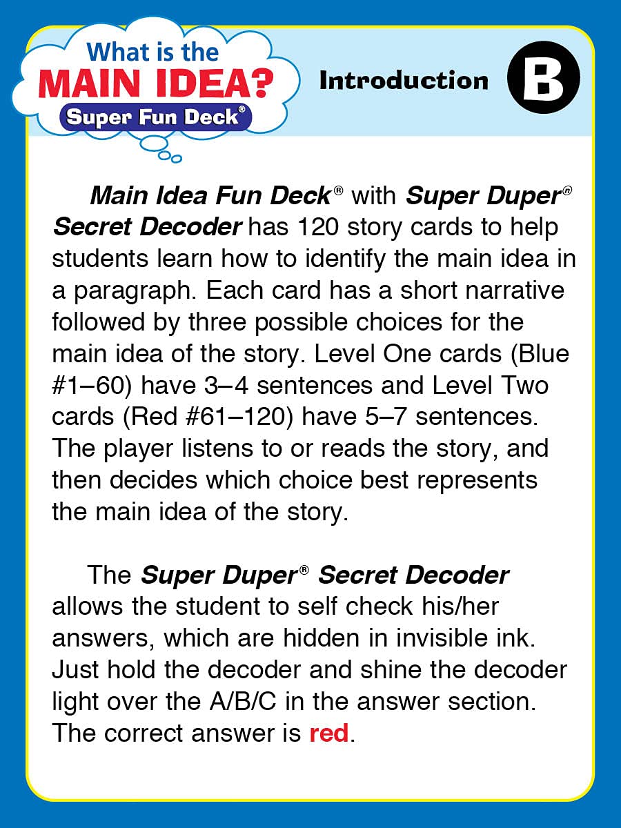 Super Duper Publications | What’s is The Main Idea Secret Decoder Fun Deck | Reading Comprehension Skills Flash Cards | Educational Learning Materials for Children